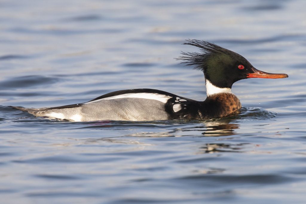 Last nights storm gave way to a brighter morning and by late afternoon there wasn’t a breath of wind. Main focus was on the open water where around Jerry’s Point/South Deep area there were 4 Long-tailed Duck, 2 Slavonian Grebe, 5 Great Northern Diver, 3 Scaup, 8 Black-necked Grebe, 3 Common Scoter, 37 Red-breasted Merganser and 18 Goldeneye. Off Middle Beach a large feeding flock of mixed gull species were feeding just before dusk with a minimum of 1000 birds present also 3 Great Northern Diver were in Studland Bay along with 8 Common Scoter, 6 Black-necked Grebe and 1 Gannet! At Sandbanks there were 2 Purple Sandpiper on the long groyn and a ringtail Hen Harrier was at Lytchett Bay. On Poole Park boating lake there were 5 Red-breasted Merganser and 3 Goldeneye and the Peregrine was back on the Asda building. It was also noted recently that 2 ringed Bearded Tit that were photographed well at Radipole on Jan 14th were in fact 2 individuals that were ringed in Lytchett Bay on October 10th last year, providing more examples of local dispersal between Poole Harbour and Weymouth.