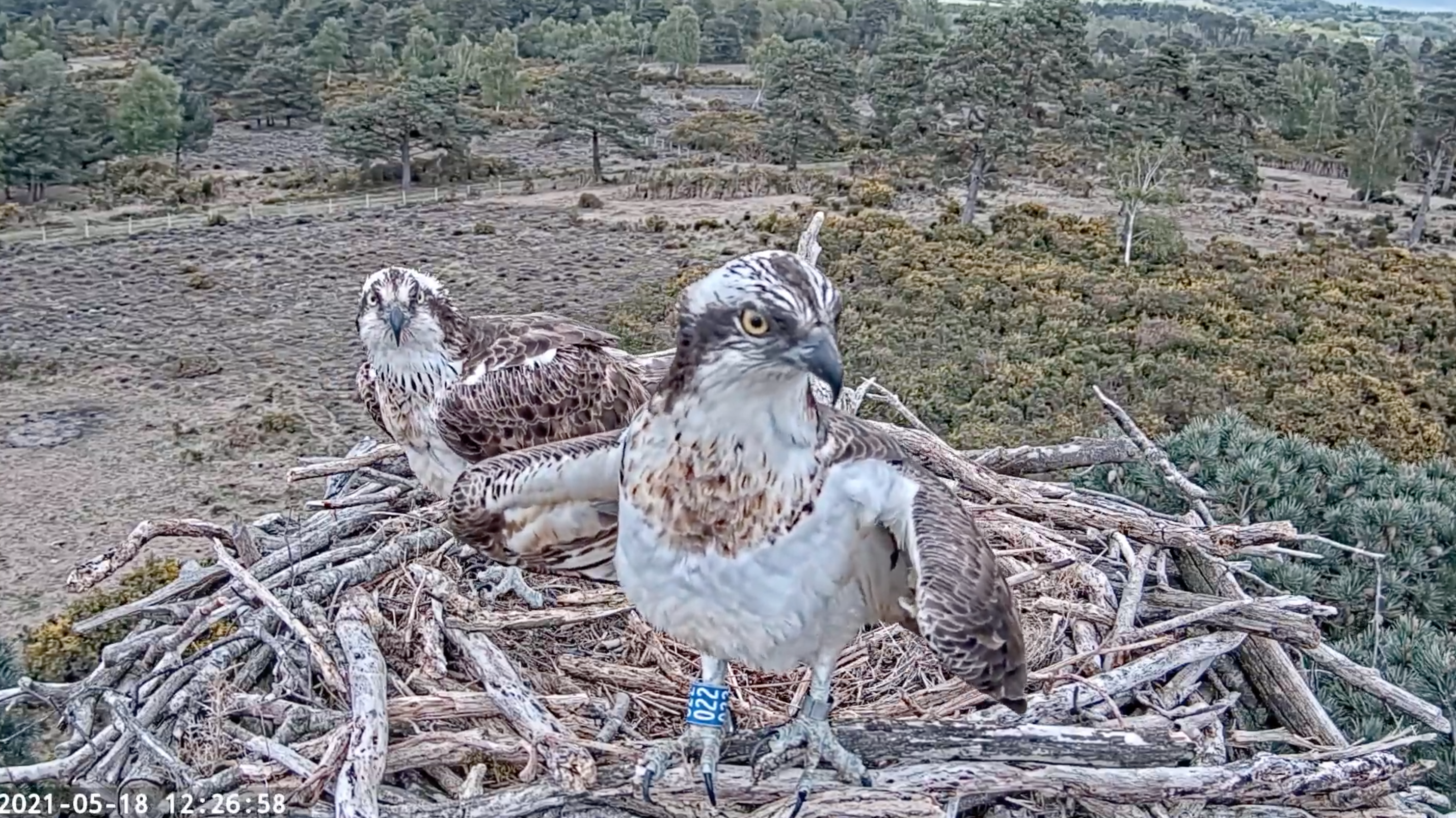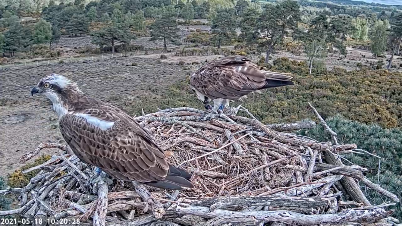 Following on from the whirlwind of yesterday evening, CJ7 and 022 continued to reinforce their bond with numerous mating attempts and 022 making adjustments to the nest and egg-cup scraping! The pair appear to be bonding well and it could be possible for them to breed this year, and if not, their relationship is forming a good foundation for breeding next year. All great signs.