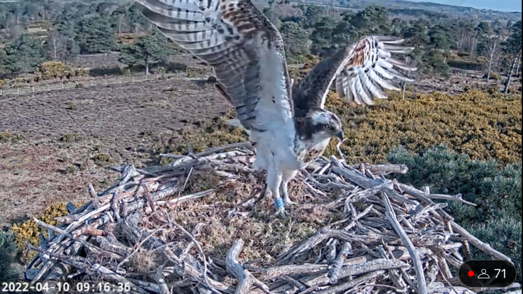 Well, what can we say! What a day it’s been not only for us, but everyone that has followed and supported our work over the last few years. We’ll be providing a more detailed update on todays events but if you weren’t aware yet, our translocated 2019 male Osprey, 022 returned and (kind of) instantly paired up with female CJ7 on a harbour nest platform. Not only that, to share any exciting moments this summer we’ve been able to instal a new nest platform camera to share this historic moment. To read the full overview CLICK HERE.