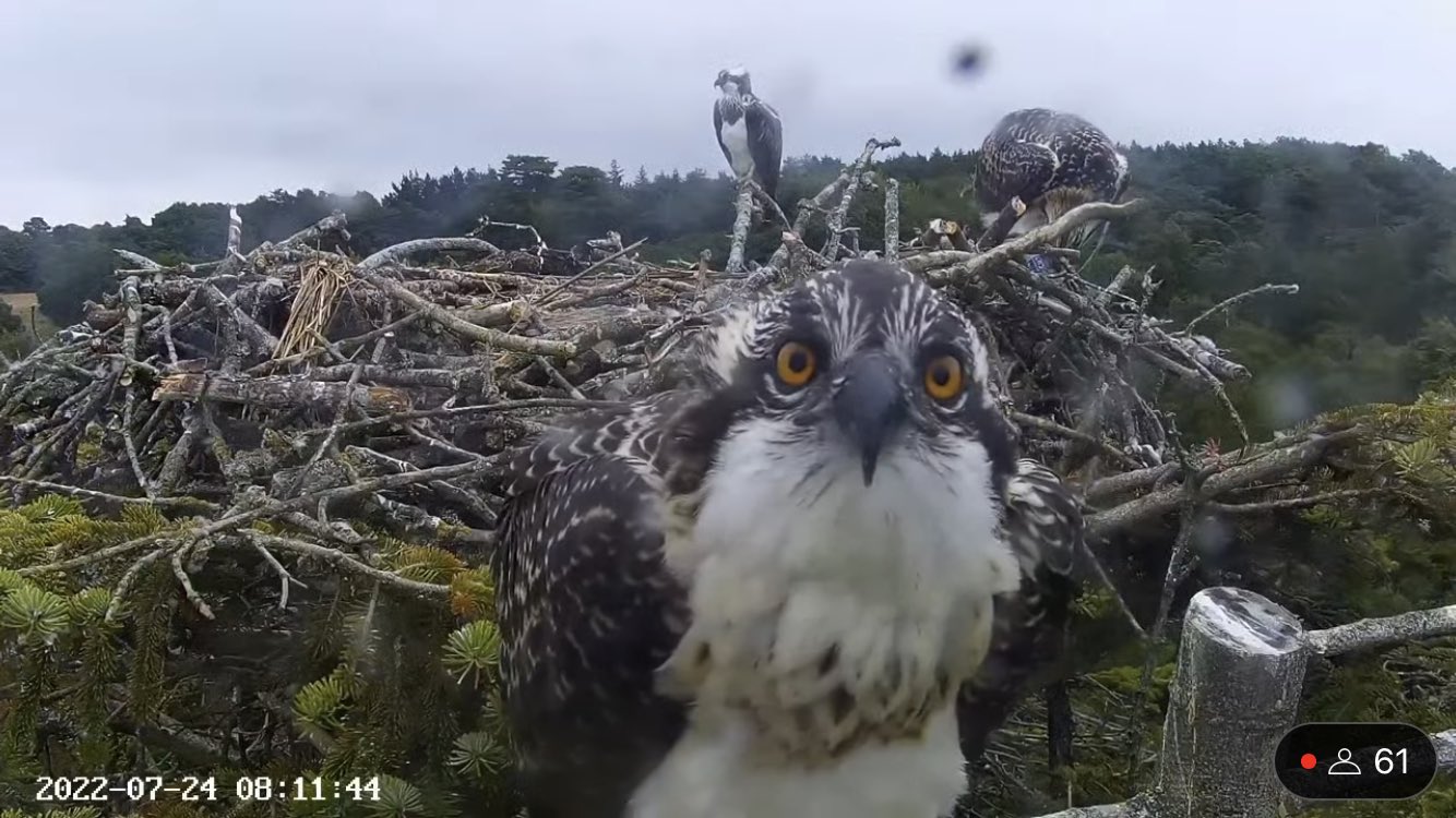 July comes and goes with our Osprey family looking content and settled now that both chicks have fledged and been on the wing for over a week now. Annoyingly one of the chicks landed on the camera this afternoon and knocked the lens down again but we’re hoping that with a re-boot we can get it in the right position again. Its sad to think that August will be the month we see them leave, meaning we only have a few weeks left before they all depart south, but with our Osprey cruises starting in about 3 weeks, we hope that for some trips we’ll be lucky enough to see the youngsters at some point.