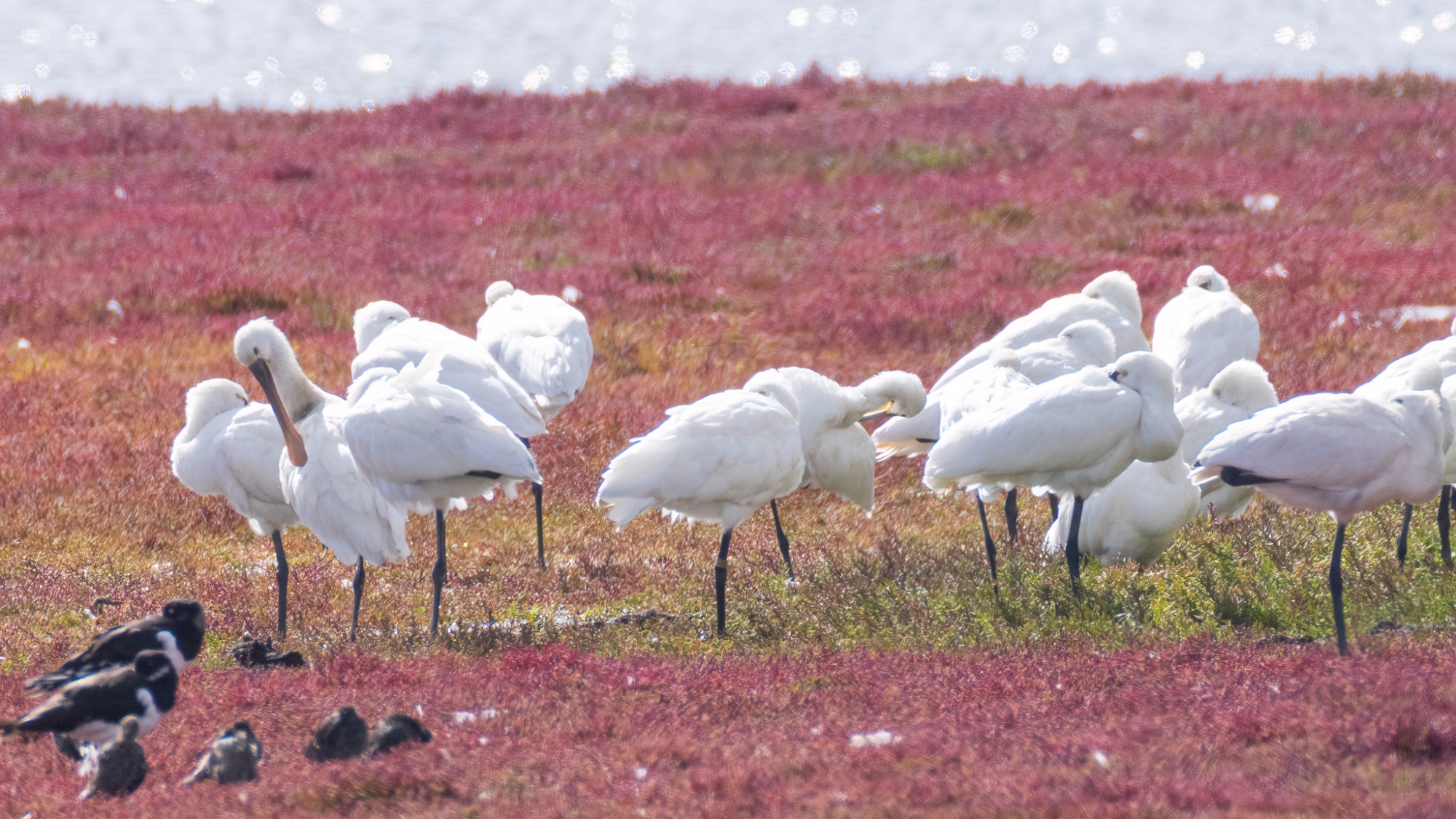 Spoonbill numbers continue to rise with now at least 66 in the harbour and mainly found on the Brownsea Island lagoon. 2 Little Stint were found amongst the larger flocks of Dunlin. Little Stint are similar in size to House Sparrows while Dunlin are a little larger, like a Starling. 10 Curlew Sandpiper, a single Knot and 15 Greenshank also on the lagoon.
