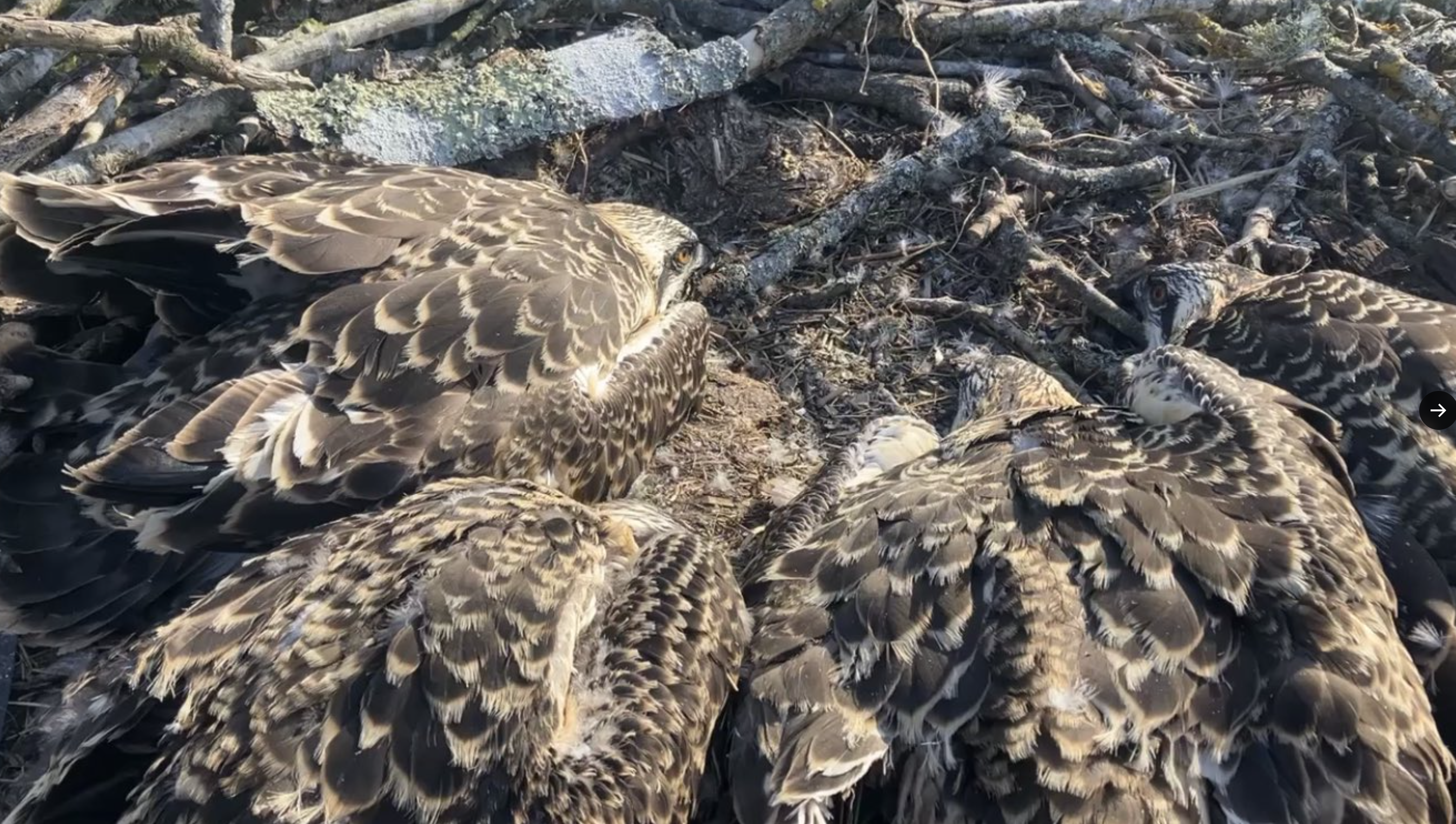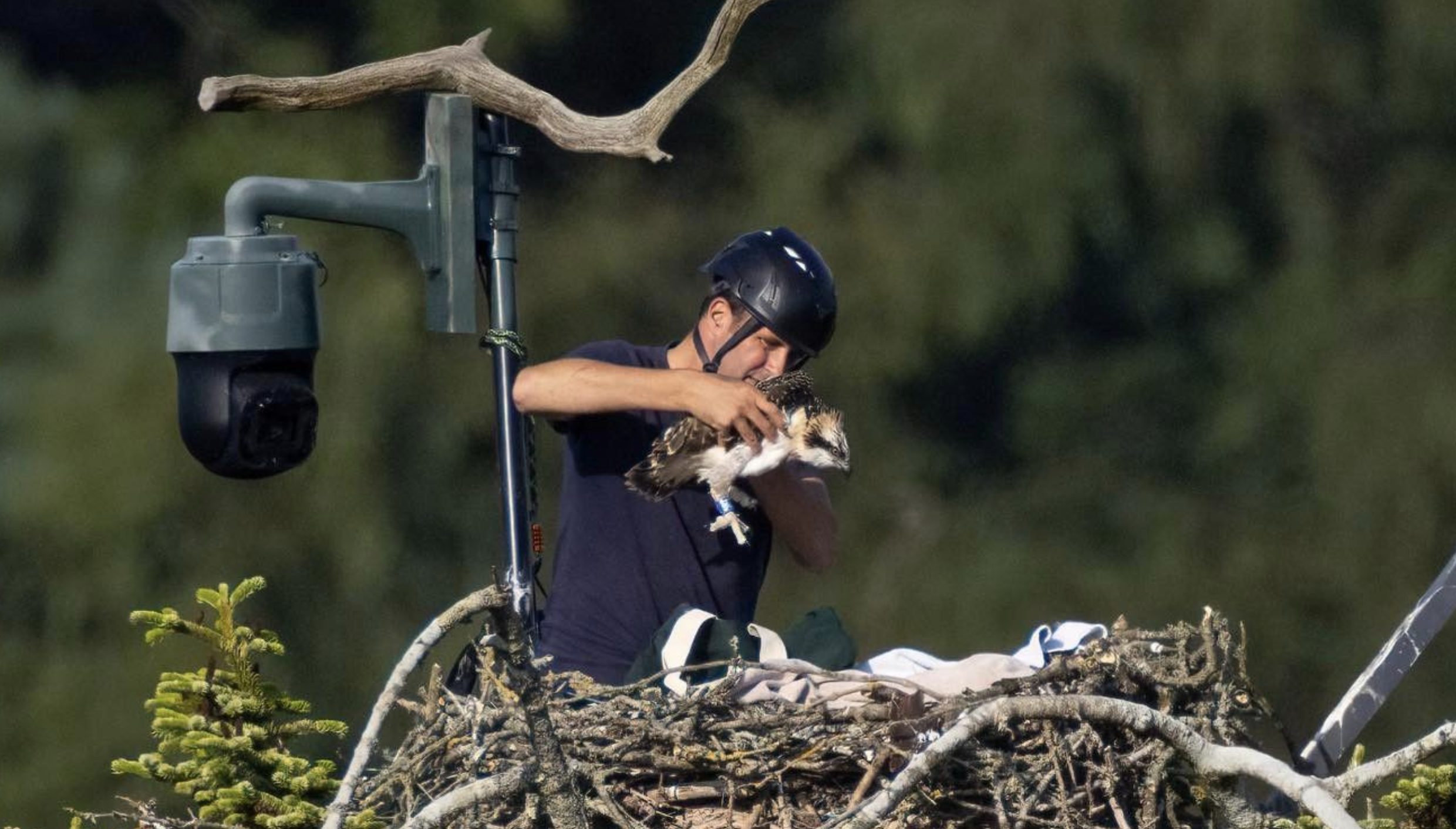 They were ringed (shown in age order oldest to youngest) 5R0, 5R2, 5R1 and a very special ring for the youngest, 5H6. Often you can determine the sex of Osprey chicks during the ringing process, taking multiple measurements, including weight, which can indicate whether a chick is male or female. Female Osprey, as in many raptor species, are typically larger and heavier than the males, and this size difference can usually be seen while still in the nest.