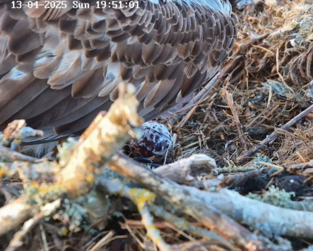 After lots of courtship, fish handovers, nest building, mating and the odd intrusion by another Osprey(!) we now have the first egg at the Careys Secret Garden nest. This is fantastic news and 2 days earlier than last year. We’ll expect the next eggs to be laid 3 days apart, so Wednesday could be when we see the next one. The average time for the eggs to hatch is 37 days although the first egg often takes 40 days, due to delayed incubation. So, we’re looking at hatching between 20th-23rd May! Since egg-laying both CJ7 and 022 have been dutifully brooding.