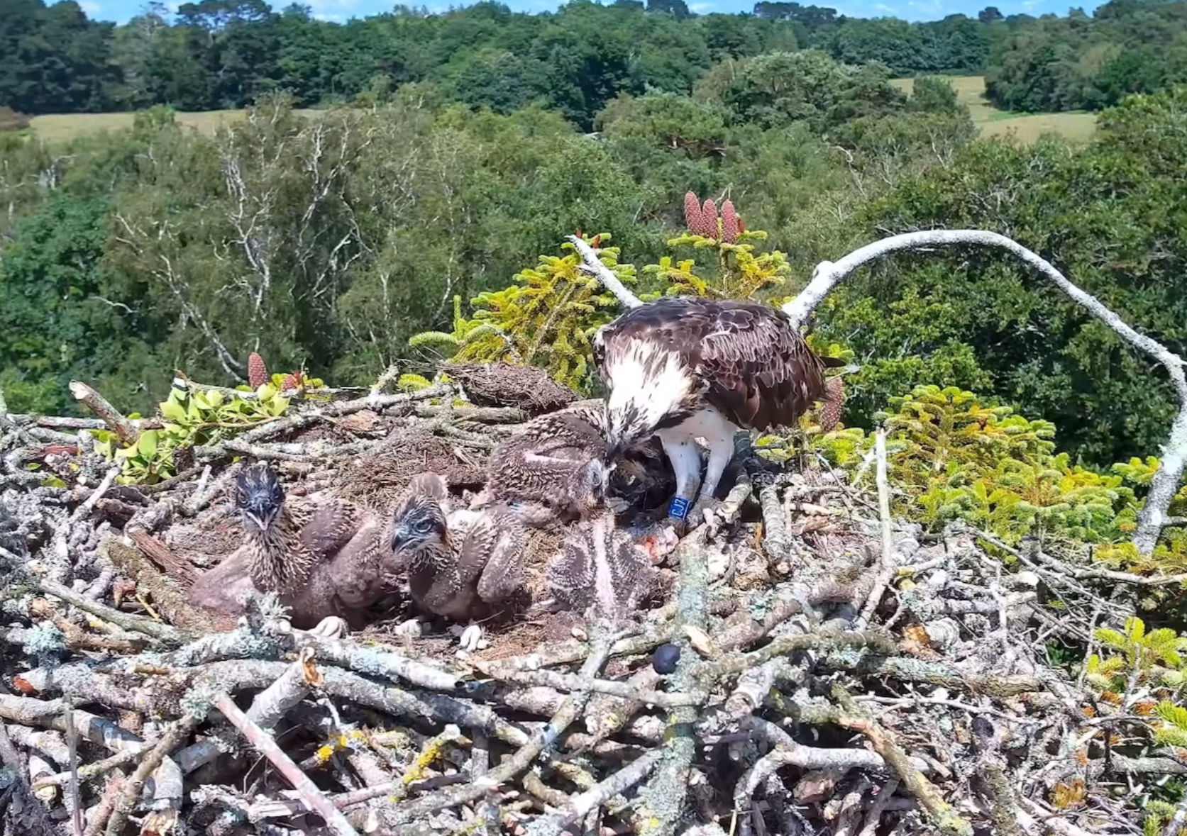 It was another exciting week for ospreys in the south. The hot weather has been bringing many raptors close to the nest, with CJ7 on high alert for any threats. There were Peregrines, Hobbies, Kestrels, Buzzards and Red kites, the latter two CJ7 has been seeing off with particularly acrobatic displays in flight. On Wednesday evening, we had an amazing sight of CJ7 seeing off an adult Honey Buzzard, with a Hobby flying up above at the same time!
