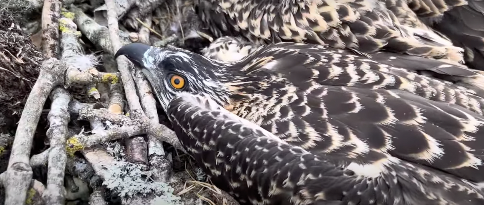 Just a couple of hours after, we noticed a crack in a second egg and sure enough by 7pm, the second egg had hatched. This is due to a behaviour called delayed incubation, where incubation is postponed until the second egg is laid, resulting in a more synchronised hatching. Just two more to go! On Friday, during our afternoon Carey Osprey Tour, a Grey Heron got a bit too close to the nest and we watched as 022 went into full defence mode. He chased the Heron up into the sky for a couple of minutes, before it eventually got the message and flew away.