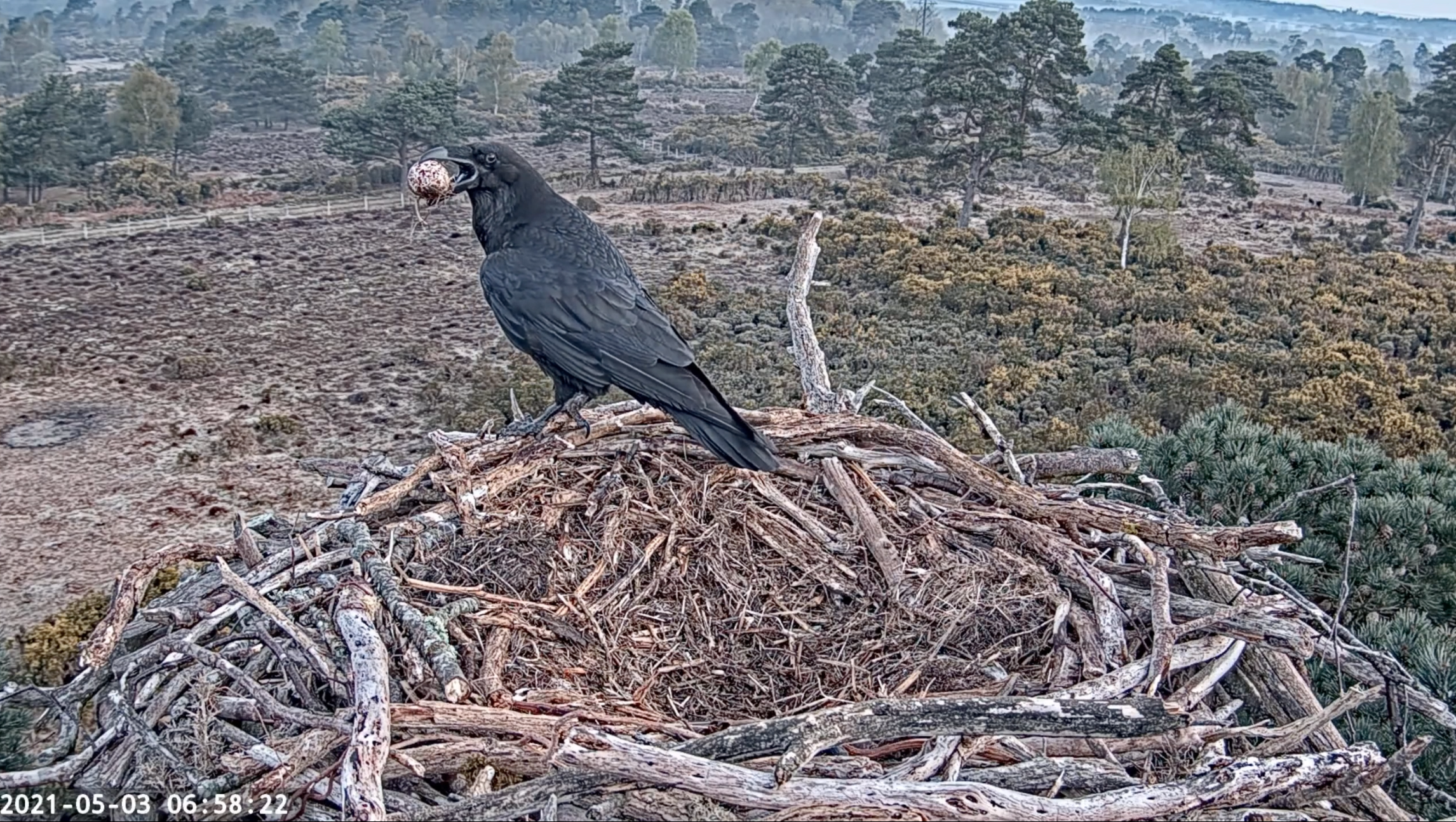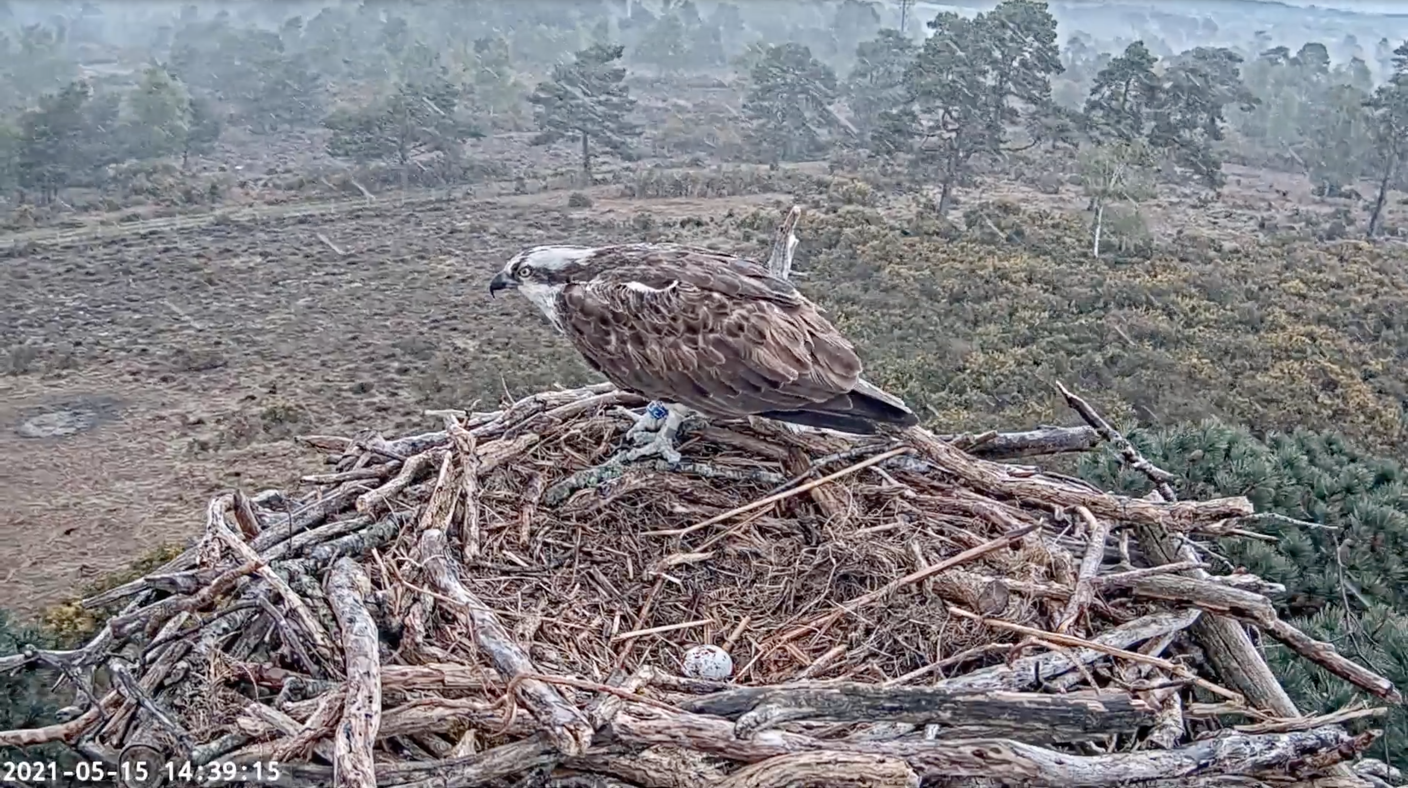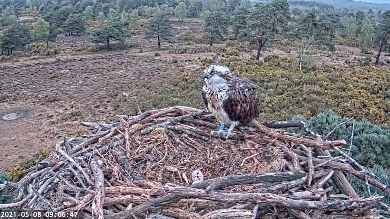 We always approach 1st April with baited breath, as it has traditionally been the return date for our resident female CJ7. And once again this year she did not disappoint, landing on our livestream nest for all the world to see at 1:31pm. She had amassed quite an online following during the spring of 2020 and many people were just as thrilled as we were to see her back. She immediately began repeating her behaviours of the previous year: collecting materials and building up the nest in preparation for egg laying. This year she outdid herself once again, however; producing not three, but FIVE unfertilised eggs! The only other documented case of this in the British osprey population was in 2015 at Glaslyn, when the female (Mrs G) produced five unfertilised eggs and subsequently two fertilised ones when her mate eventually arrived. Mrs G is an incredibly strong individual who has bred at Glaslyn for the last 18 years, so to see similarities emerging between her and CJ7 is very encouraging.