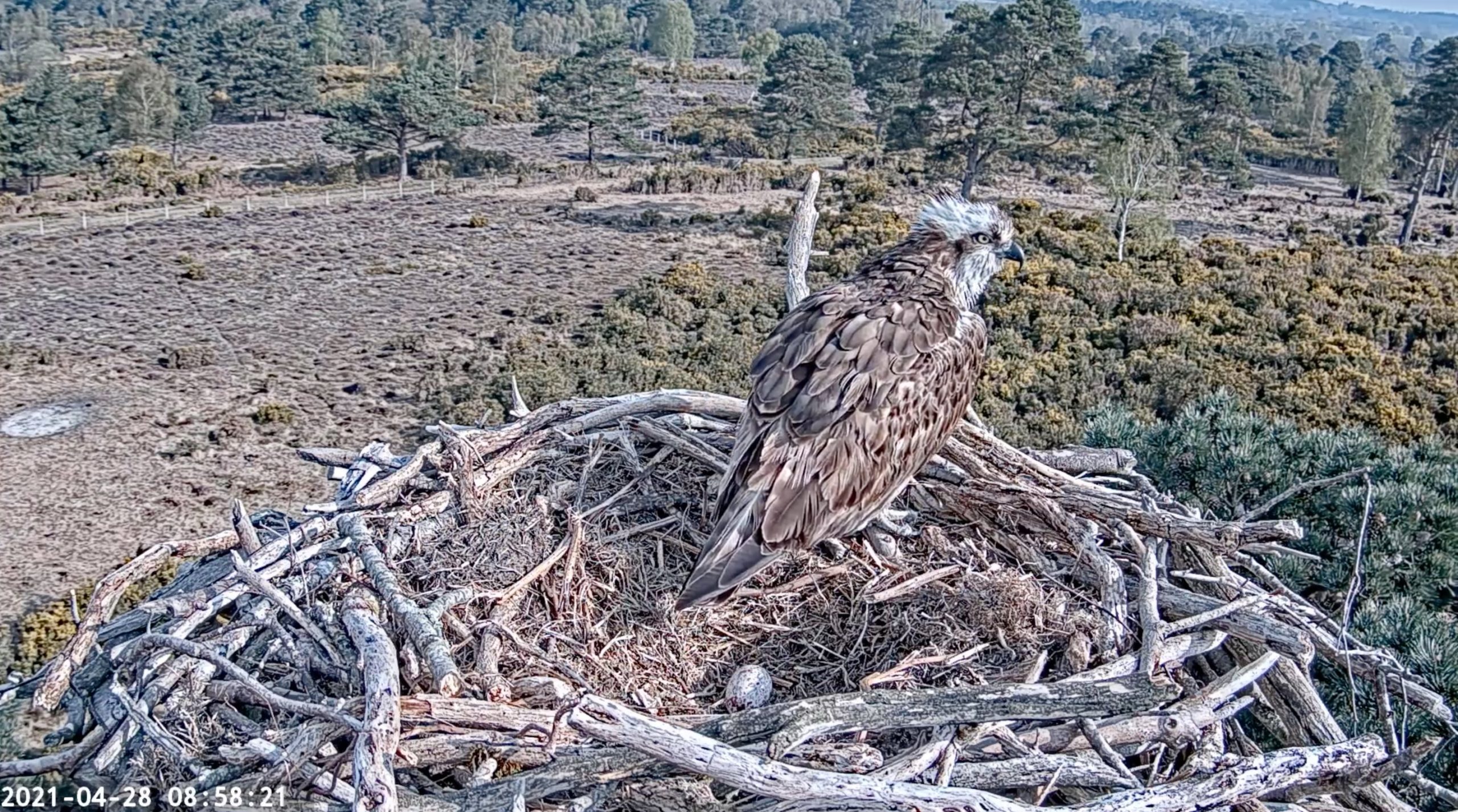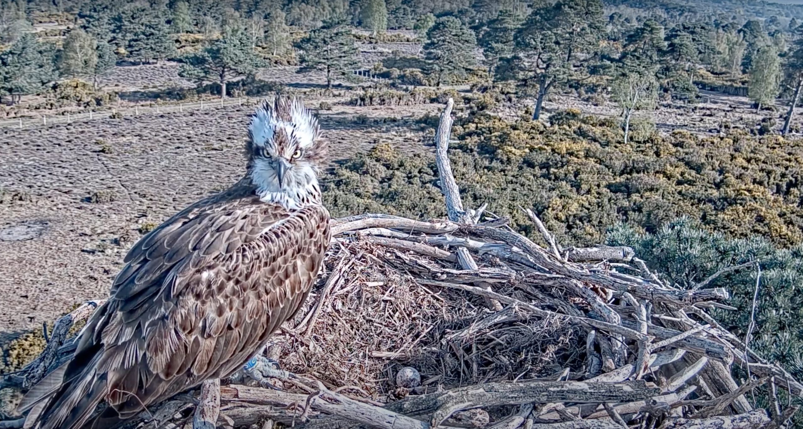 AFTER YEARS OF WAITING, IT FINALLY HAPPENED!! At 14:58 this afternoon CJ7 laid her first egg with a mate! After standing up to inspect and turn it, ten minutes later she lay down and began incubating (something she never did for her unfertilised eggs over the past two years)! At 15:17 022 arrived and actually tried to mate with her, until she stood up and revealed the treasure she had been guarding. It was a very touching moment to see him descend into the nest bowl and move gently around as he took his first inquisitive look. Once he had satisfied himself that it was indeed an egg and was indeed his, he departed and CJ7 resumed her incubation. Throughout the evening they were both on and off the egg, although it looks as though 022 could use some incubation practice… something we’re sure will come to him with time. Already we’re getting to see brand new behaviours not witnessed in Poole Harbour for centuries, such as a female settling down to incubate her egg overnight… what a reward and what a day!