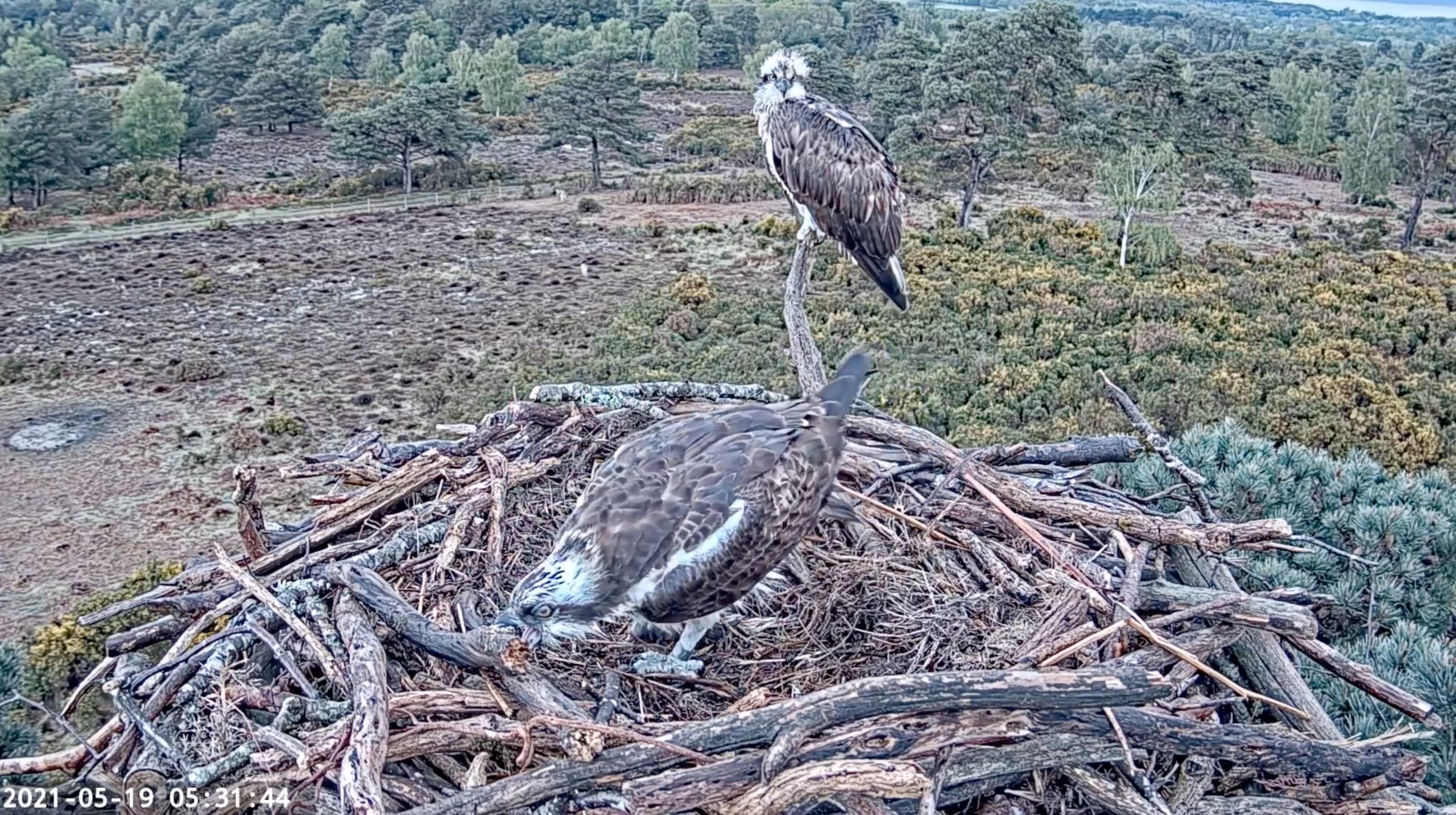 Today marks 37 days (the average osprey incubation period) since CJ7 laid her 1st egg, so we’re on tenterhooks! After a fairly uneventful few weeks, we’ve seen a definite increase in the attention they’re paying to the eggs in the last 48hrs, including lots of standing up to check on them and frequently turning them over. It’s very possible that this has been prompted by increasing vocalisations from within the eggs! We’ll be keeping a very close eye on their activities from here on in, particularly for changes to their feeding regime and movements around the nest.