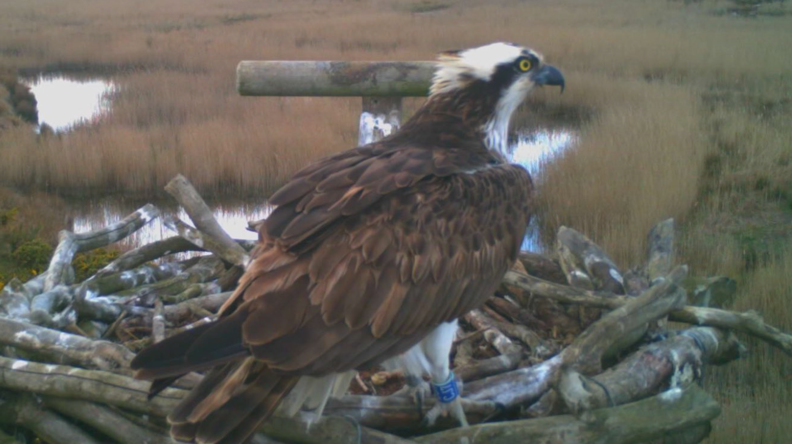 The day we have all been waiting for has finally arrived! CJ7 returned, landing on one of our other artificial nests not long after 17:30 this evening. She stayed on the nest for less than an hour before departing. It’s fantastic to see her back for her sixth year in Poole Harbour – could this be the year we have breeding success? We’re keeping our fingers crossed for the safe return of 022. Though she didn’t first appear on the livestream webcam, it’s still worth watching as she could put in an appearance at any time. You can find the link to the channel here.