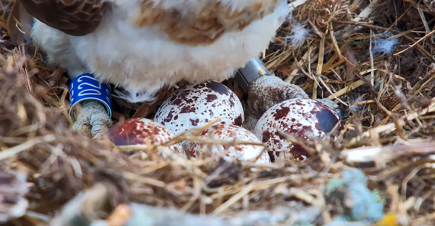 This is the third year that the pair have bred at the site at Careys Secret Garden near Wareham, having raised three young successfully last year. It is unusual for Ospreys to lay a clutch of four eggs, usually producing only three as CJ7 and 022 have done previously. The eggs will be incubated by the pair for around 37 days, and hatching is expected to occur in the latter part of May.