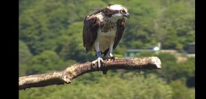 Wow, if things hadn’t been eventful enough over the last couple of days things really ramped up today when we received some exceptionally exciting news, not from here in the harbour though, but from the western edge of Wales. At around midday a mystery Osprey was spotted on the Dyfi Osprey project webcam, trying to land briefly on the nest with Telyn, their breeding female. Telyn wasn’t really happy about this and the intruder was forced away and eventually settled on one of the perches near by, still in camera view. Thanks to the excellent zoom function on the Dyfi nest cam, the team up there were able to zoom in the newcomer, only to see it was a blue-ringed individual on the right leg…..an British bird! Was it another returning Welsh youngster, or perhaps even a Rutland youngster doing the rounds? Nope. After an agonising wait for the bird to reveal the ring number it eventually did, revealing the code 014!!!! This is a female 2018 Poole Harbour translocated chick. EXCELLENT! As you may remember 2018 was a difficult year for the team and the project with the intense heat wave of that summer sadly impacting on some of the chicks development with several sadly not making it through to migration. However, out of the six that did leave (3 male and 3 female), we knew they were all strong birds and there was a chance we could see one or two back, especially 013 and 014 which were always really big and strong birds from the very start. And now here we are, two years later and 014 is now back in the UK. Her arriving in Wales is pretty typical of a two-year old as youngsters often spend their first summer back in the UK touring the country, interacting with other Ospreys before often then returning to their natal sites later in the summer/early autumn for a short period of time. They’ll then leave south for the winter before hopefully returning back to their natal sites the following spring. The truth is, with 014 being female, she could quite easily be tempted away to breed at another established site, like Wales or Rutland, but we hope we can have enough returning males visiting Poole Harbour each spring over the next 4-5 years that will do their best to make her want to stay here instead! The dyfi team have put this excellent video together documenting 014’s visit to the nest today