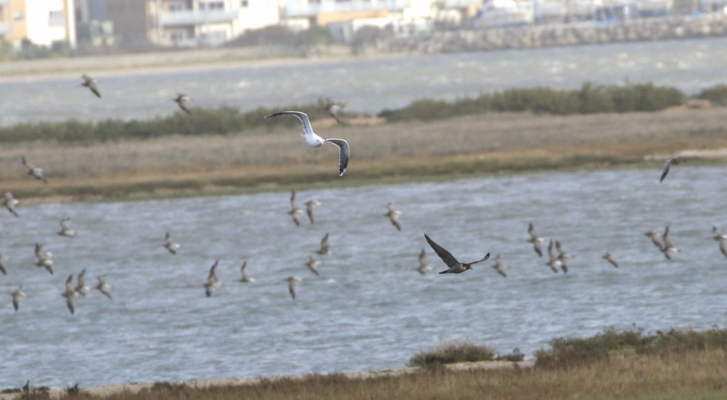 Peregrine chasing down Curlew – Shipstal Point, RSPB Arne – dizzygirl66.bsky.social (BlueSky)