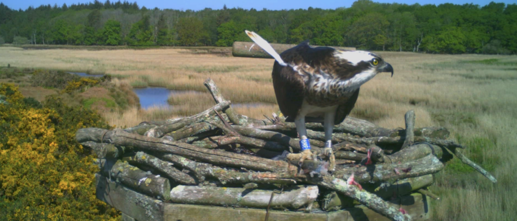 We also received info of a new Osprey in the harbour this morning, which at a distance looked like it was ringed. We’re now in the period where 2-year old Ospreys begin to arrive back, and we’re on the look out for ring numbers 5H3, 5H4 and 5H5. Could this mornings bird be one of those. Fortunately it landed on one of our nest platforms which allowed us to read the ring number as 3H9. This wasn’t one of ours, but yet another Rutland female, our fourth to visit the harbour this spring! Also at Middlebere today were 5 Spoonbill, 1 Cuckoo and 1 White-tailed Eagle flew over.