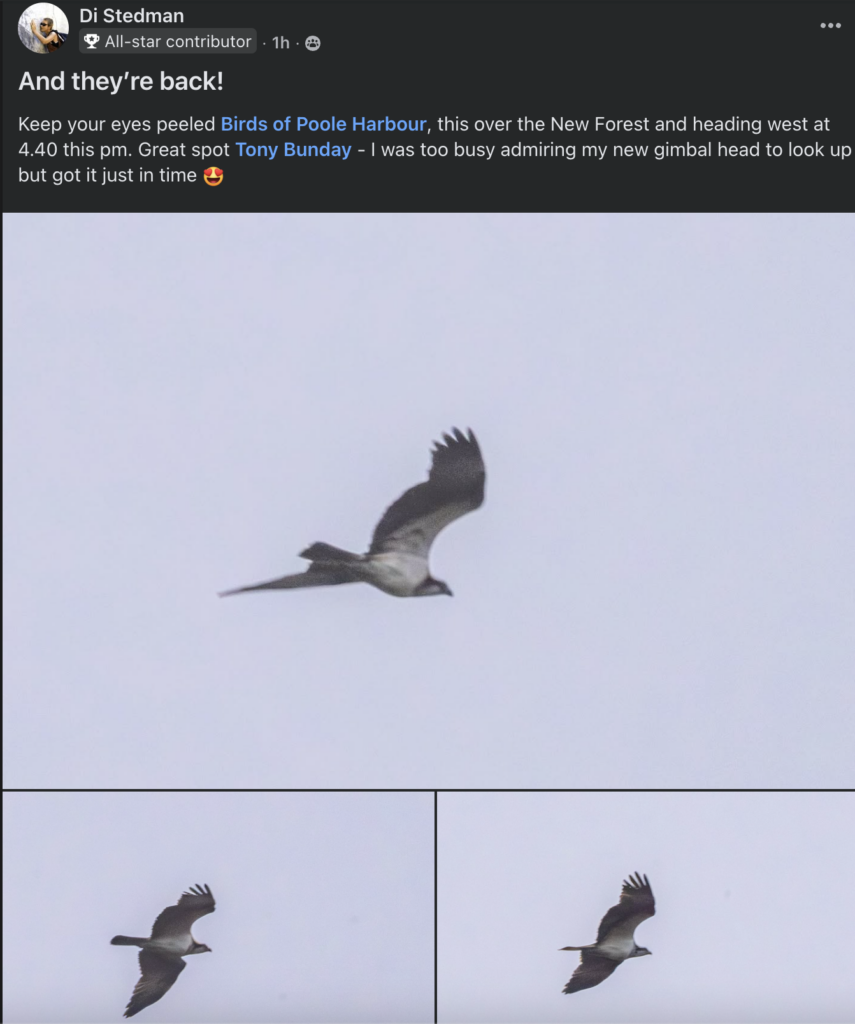 Facebook post reporting Osprey over the New Forest