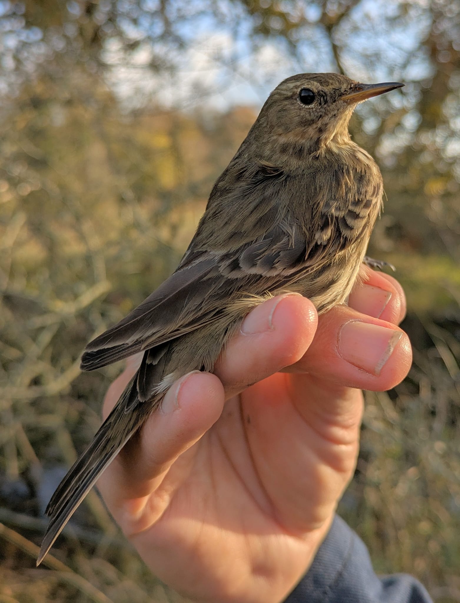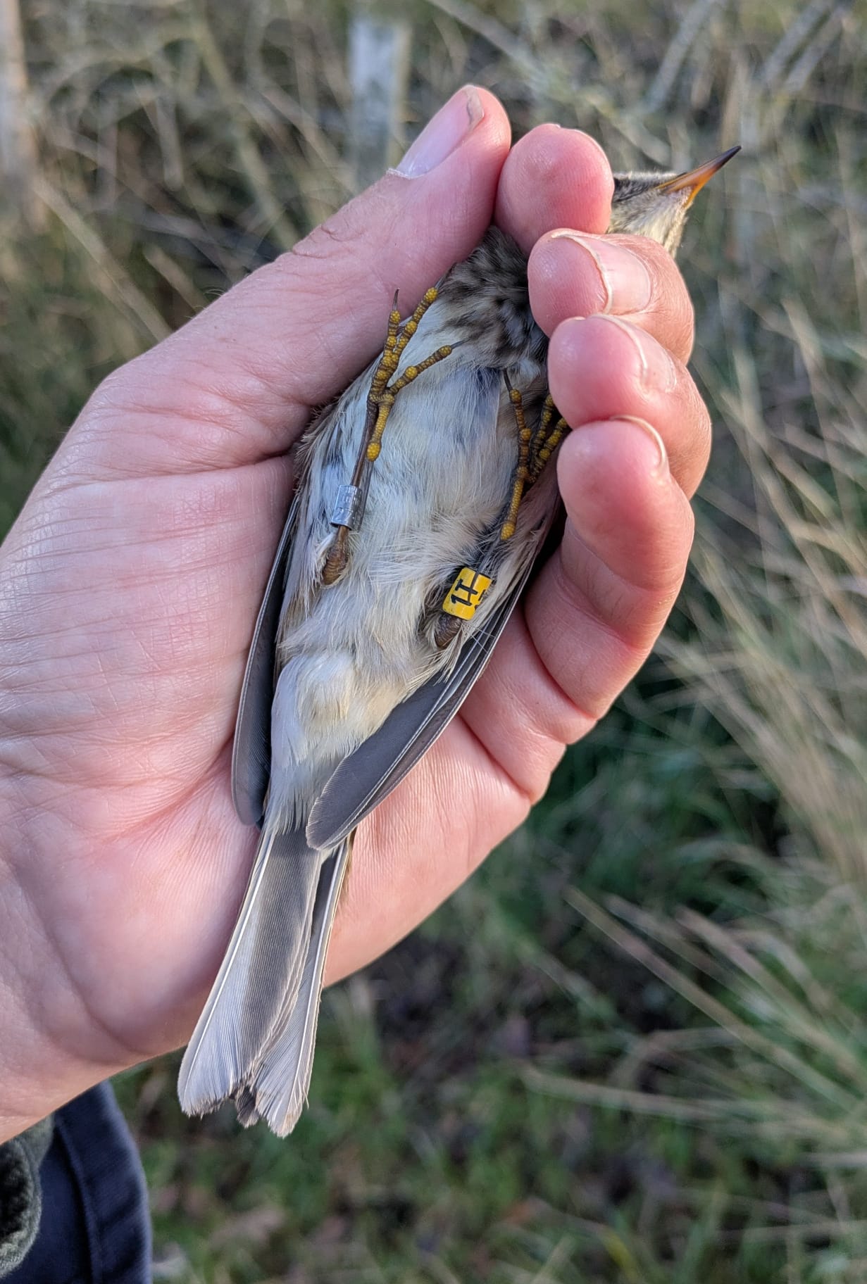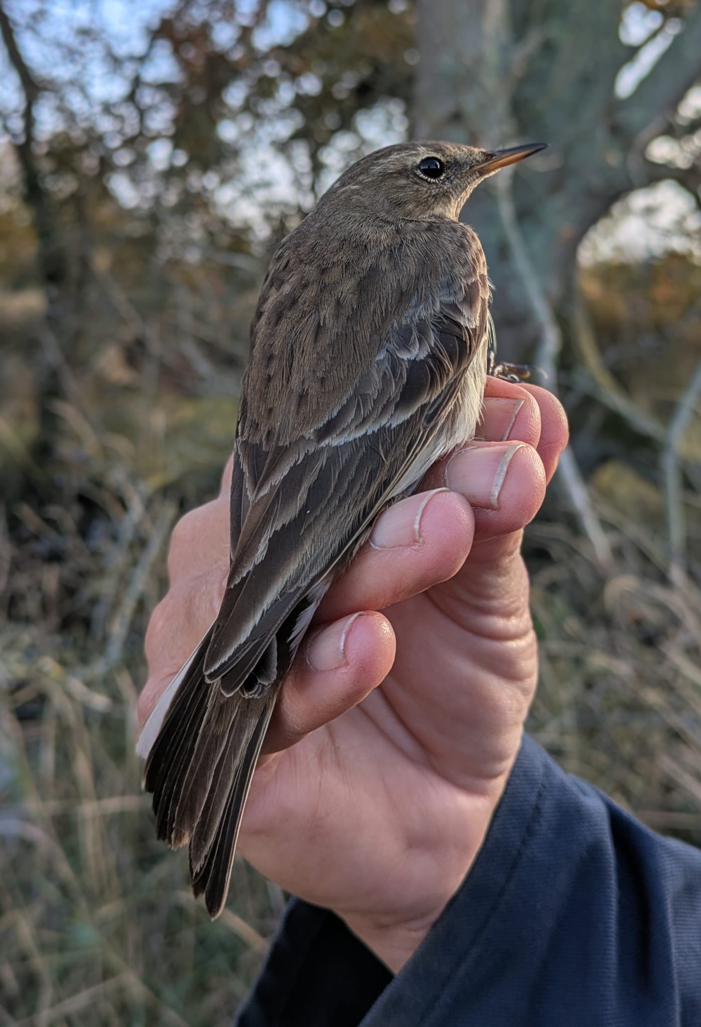 Rock Pipit having been colour ringed – Lytchett Fields – Shaun Robson