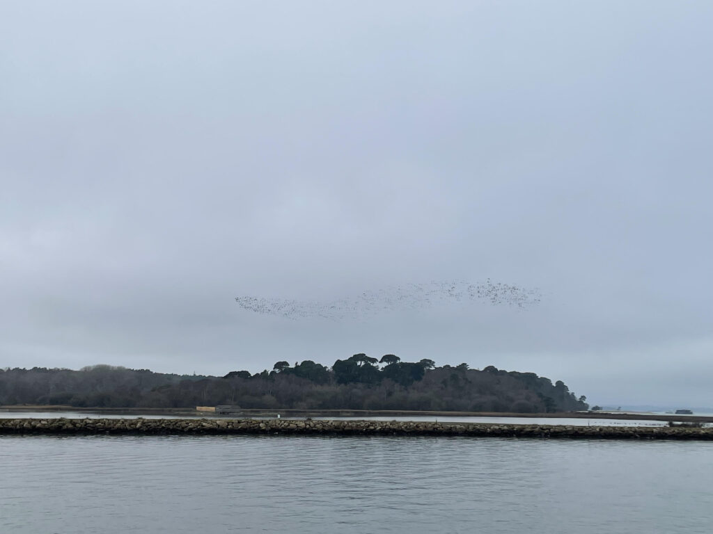 Dunlin and Grey Plover Flock over Brownsea Lagoon – School Bird Boat this morning