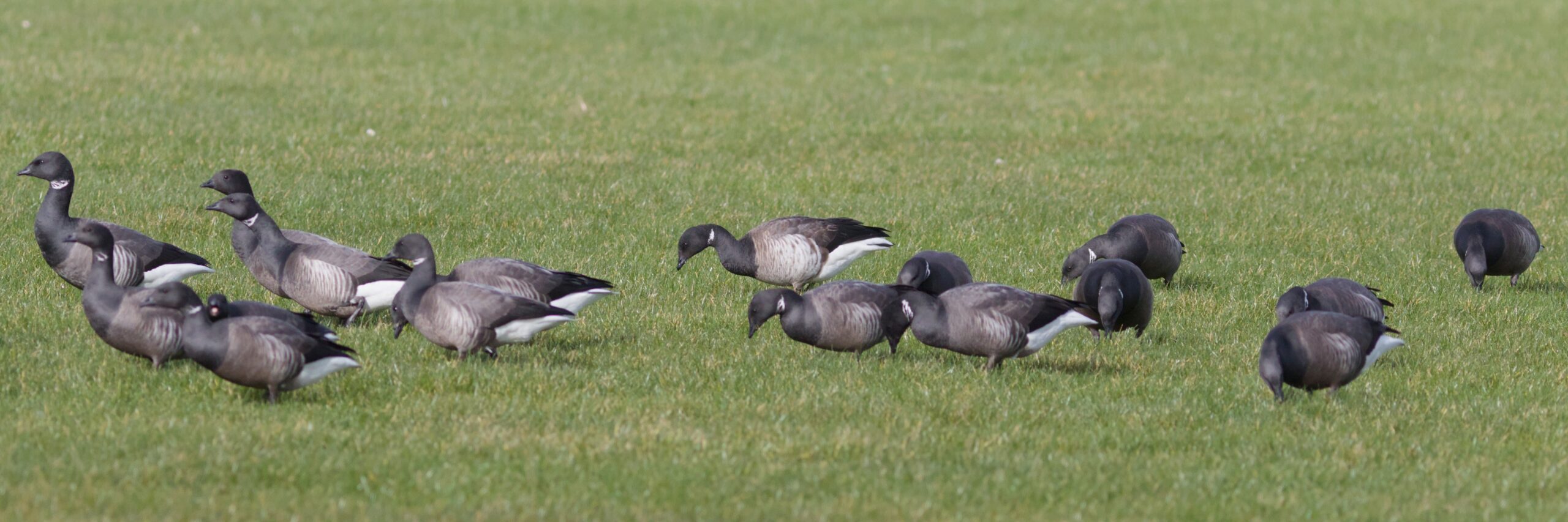 Pale-bellied Brent Goose (centre) in with Dark-bellied flock © Joe Parker