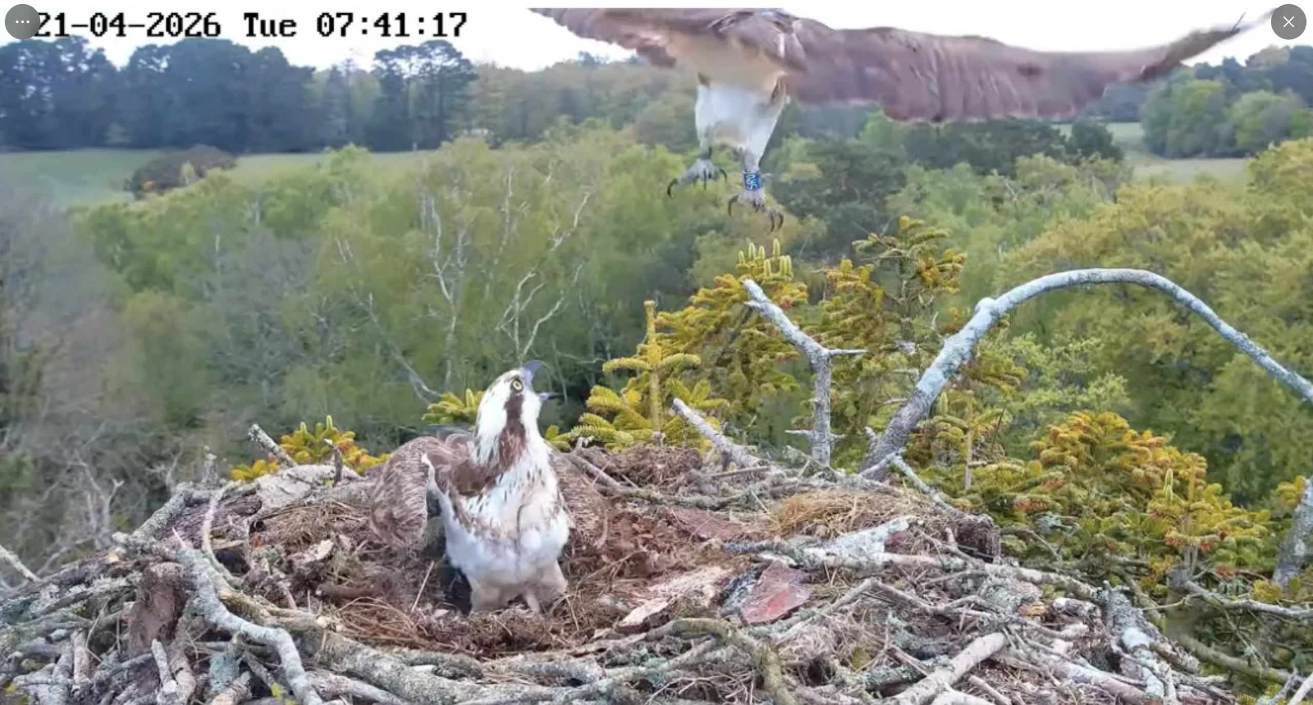 There was more drama at the Osprey nest this morning when another intruder Osprey decided to visit, but this time giving it’s identity away by dangling a leg in view of the camera. It was none other than our 2-year old male 5R0, the bird that was photographed down in Devon last week. As we said at the time, this is incredibly early for a 2-year old to be back and he seems to be partially sticking around. No doubt he’ll disappear later in the spring and ‘chill out’ for the summer, before returing again in early autumn to check out potential breeding sites hopefully for next year. We did see 2 Osprey moving around over the Wareham Channel late morning during our boat trip which we believe to have been our local male 022 escorting newbie 5R0 out of the area. Plus, another Osprey was seen (potentially?) arriving fresh in over Ridge and seen heading towards the Wareham Chanel.