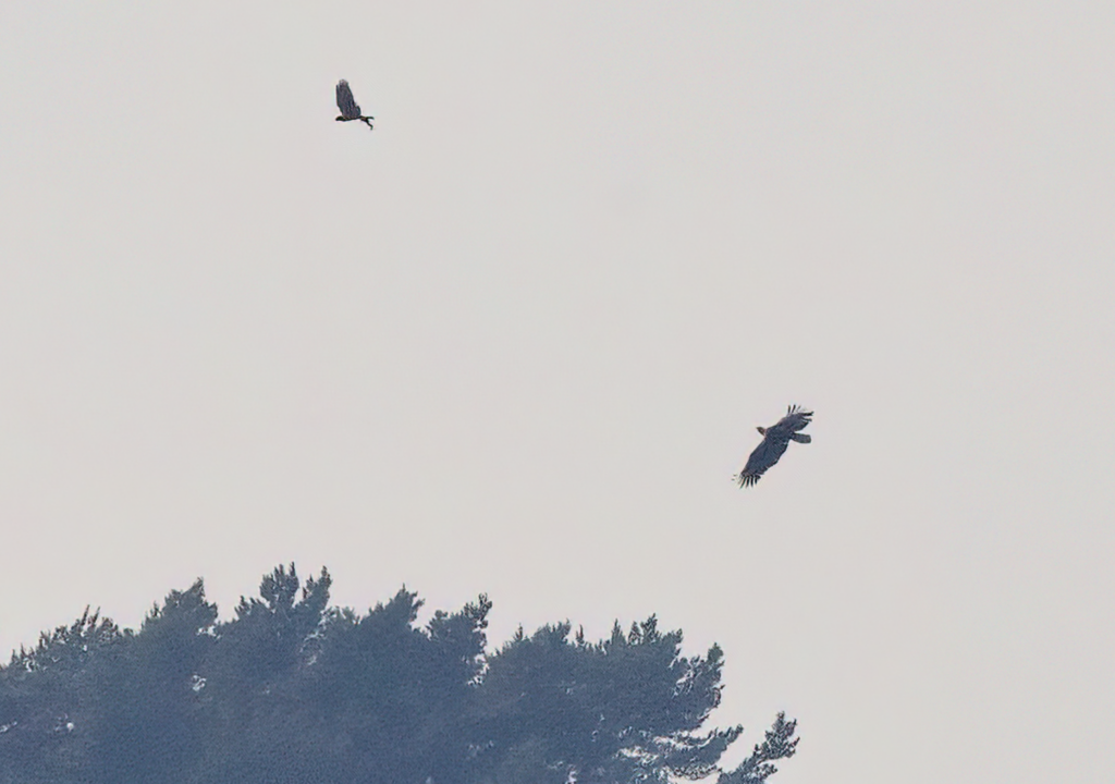 Male White-tailed Eagle G463 chasing down male Osprey 022 from our Sunset Safari last night – Harry McBride