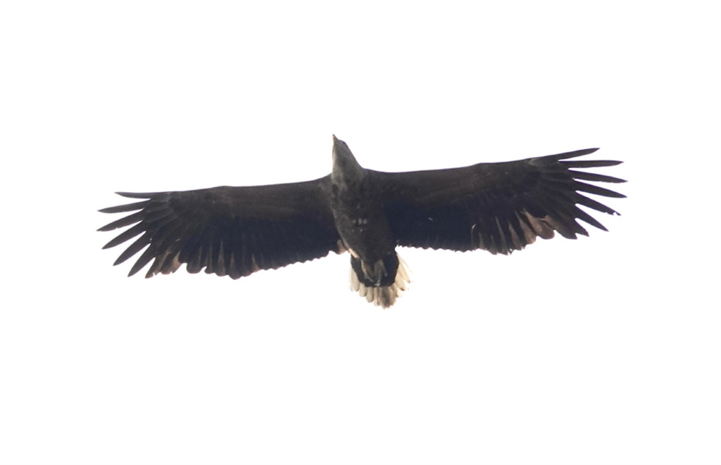 Female White-tailed Eagle G466 over Coombe Heath, RSPB Arne this morning – Alison Copland