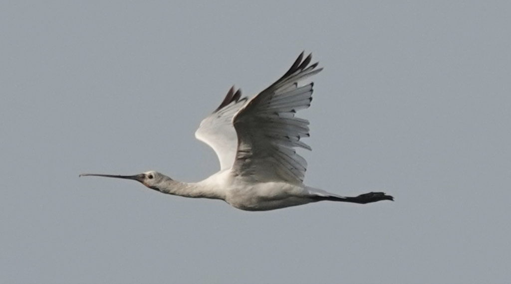 2nd cal year Spoonbill in wing moult over Coombe Heath, RSPB Arne this morning – Alison Copland