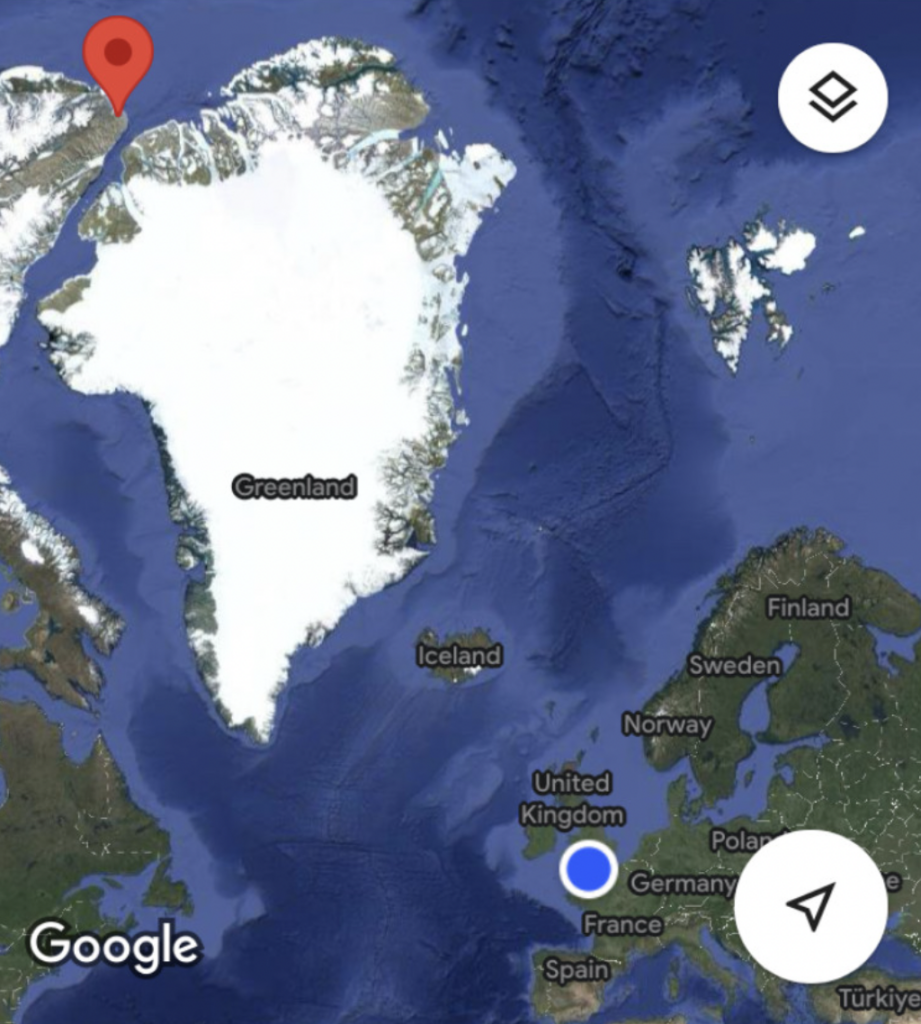 Turnstone ringing location in Alert, Northern Canada in March 2023 and over-wintering site in Poole