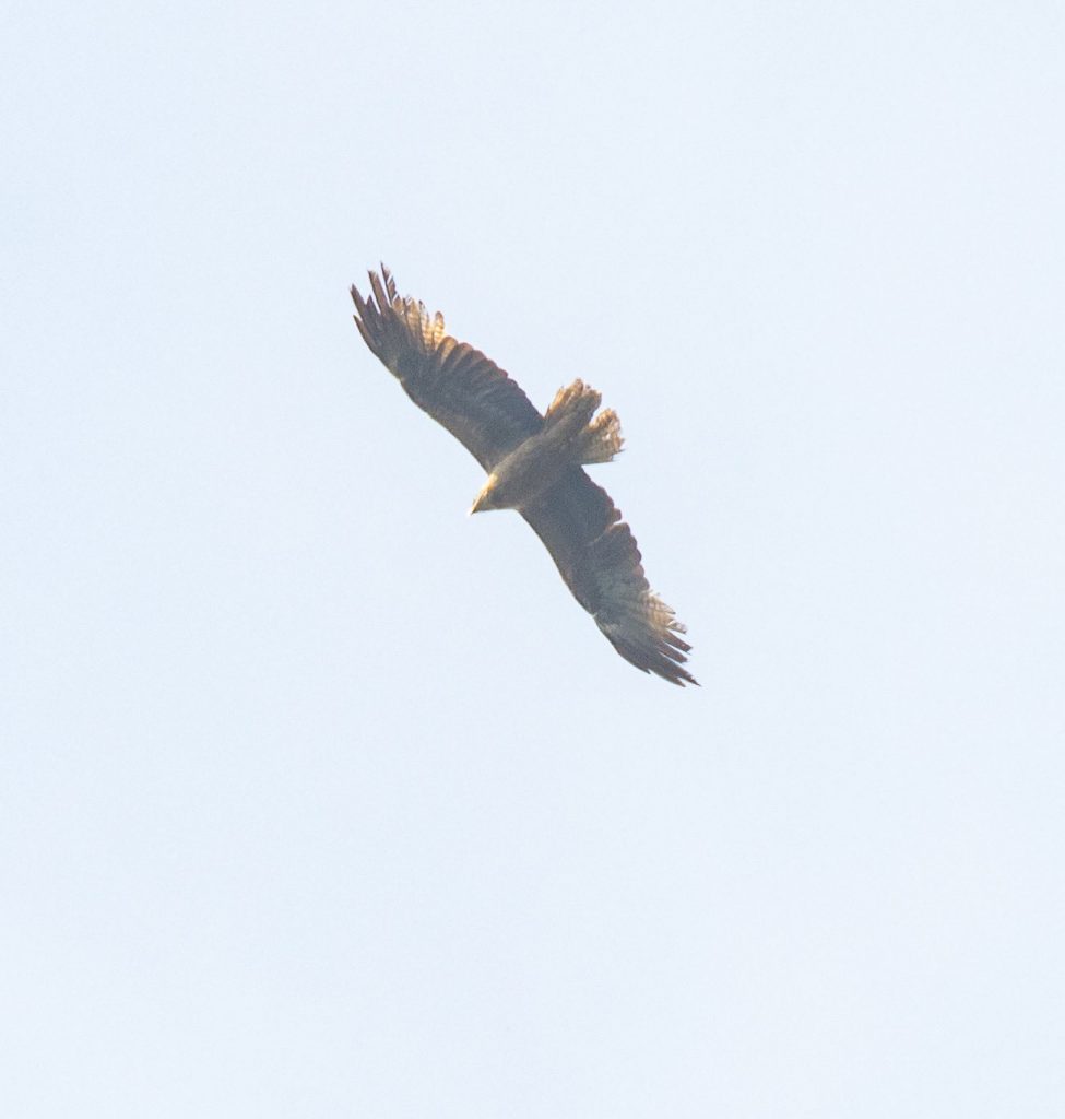 An exciting report shortly before noon of what was initially thought to be White-tailed Eagle flying low over Greenlands Farm, before gaining height and heading east towards Poole, had us scanning the skies over the harbour from Poole Quay. However, when photos emerged the images didn’t seem show a classic White-tailed Eagle, but in fact another large raptor species. The jury was out and suggestions ranging from Booted Eagle and Lesser Spotted Eagle began being muted. However as the photos were more widely circulated it was agreed the bird was in fact a kite species of sorts that was in heavy moult, most likely a Black Kite. In fact what was thought to be the same individual was photographed over Porthgwarra, Cornwall on June 18th and was ID’d then as a Black Kite. It certainly got plenty of heads scratching!