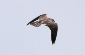 Today an interesting and exciting development occurred when looking back at a bird that was seen in Lytchett Bay on Aug 25th. On a warm August day, local birder Rene Goad photographed what initially looked like a Peregrine Falcon flying over Lytchett Bay. Happy with his photo, he then posted it on Twitter which is where we first became aware of the sighting. Looking at the photo, it certainly showed a falcon but a few things didn’t quite add up. The bird was an over-all dark and ‘dirty’ plumage and the structure didn’t look right for Peregrine as it seemed too slender in the wing and too long tailed. Anyway, we asked Rene if any more photos were available but sadly there weren’t any more. A few days passed and the image was puzzling and frustrating us so took another look yesterday when a few thoughts started running through our head. Was this a hybrid of different falcon species or was it, with it’s dark plumage, bill shape and colour, body shape and wing shape potentially an Eleanora’s Falcon? If it was to be the latter this would be a first not only for Poole Harbour but also a first for Dorset! We’ve sent the photo to several people and at the moment there’s still debate on the confirmed ID, but there’s strong potential this could be an Eleanora’s Falcon which would certainly be one of the finds of the year!! We’ll keep you posted with any updates.