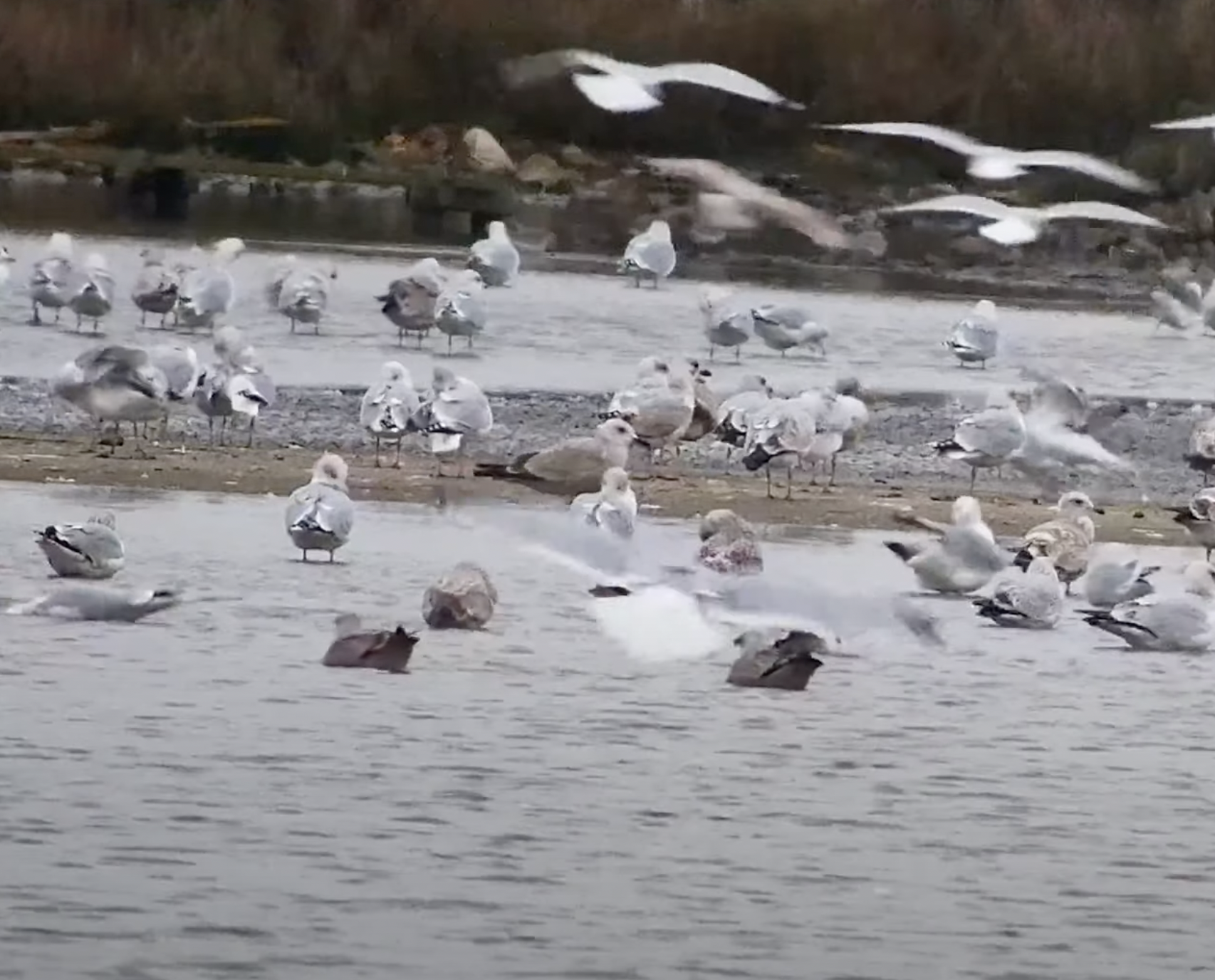 Possible Caspian Gull (central bird) – Brownsea Lagoon