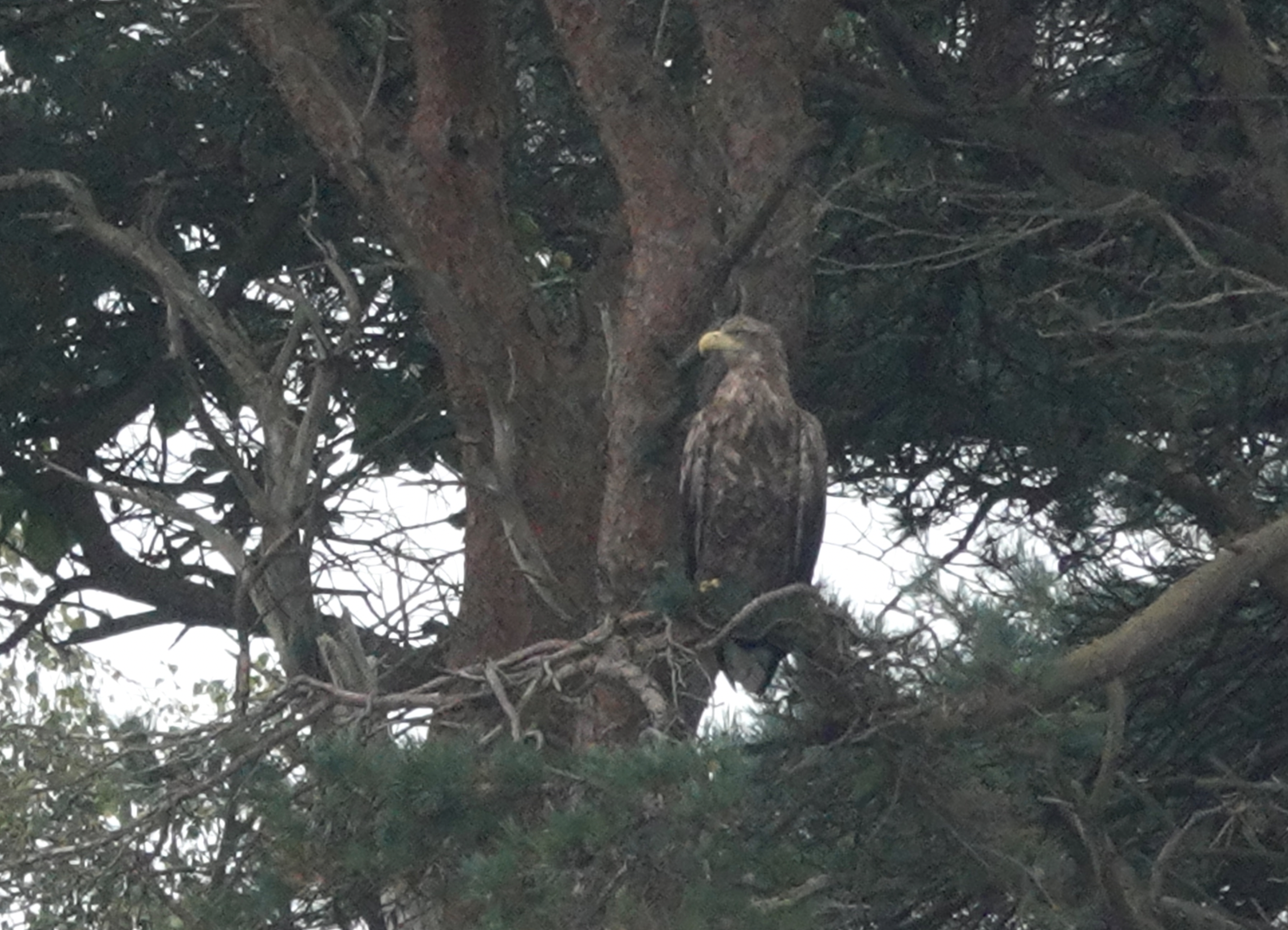 Female White-tailed Eagle G466 resting on Furzey shore – Alison Copland – From our Autumn Safari this AM