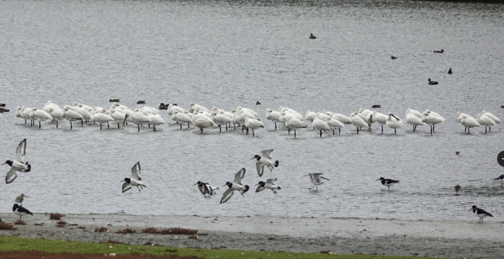 Spoonbill flock on Brownsea Lagoon – Alison Copland – From our Autumn Safari this AM