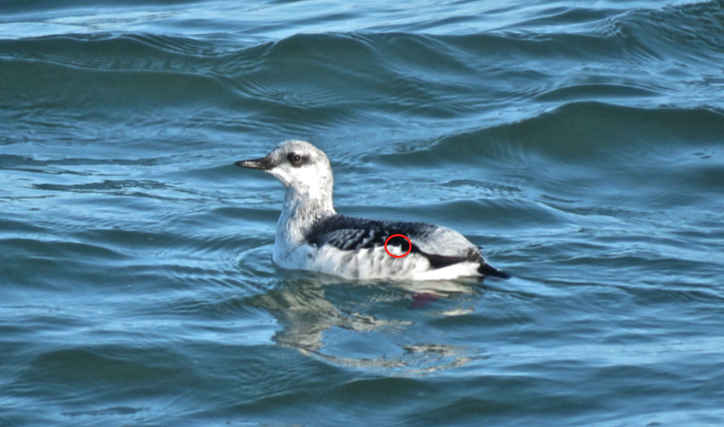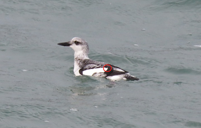 The Black Guillemot was again off the Brownsea SE corner mid morning, viewed on a School bird boat. If anyone wishes to try and see it, it is ‘scopable’ from the Sandbanks Quay looking towards Brownsea, also from the Studland side too, but calm water is pretty helpful. It was also questioned as to whether it was a different bird to the one seen back on December 12th 2015, and looking at photos taken of the birds, they do seem to look different. However, after closer inspection thaks to Weymouth birder Brett Spencer, a tiny detail which can be seen in both photos (a small white hook on the white wing patch) indicates its almost certainly the same bird, its just that todays bird had its white patch covered by flank feathers.