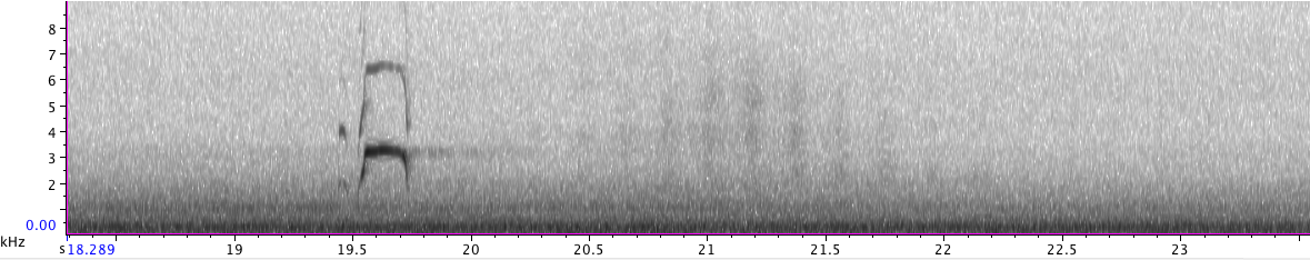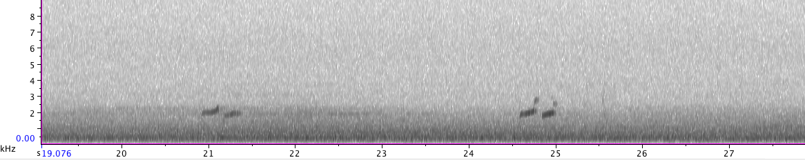 Finally was this Oystercatcher, which is probably the most frequent wader we encounter from the station, due to the fact they’re so vocal and numerous. This bird again passed so close to the microphone that you can even hear its wing beats after the loudest call, and which can be seen within the sonagram.