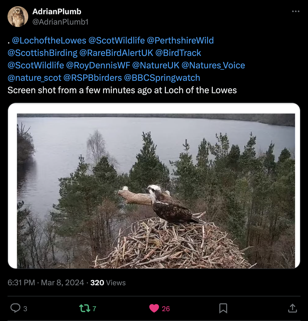 Despite the cold easterly wind there was plenty going on today, including loads of new arrivals, including (and quite amazingly) the first Osprey back on it’s nest up in Scotland!!! This is ridiculously early, but this particular female is a well known individual called NCO and according to the Scottish Osprey folk, she’s 10 days earlier than last year! Thats pretty amazing and has now put us on high alert for any early arrivals here in the harbour. Our live streams are almost ready to go, and will hopefully be up and running early next week, however based on todays events, maybe we should get them up now?! Other firsts today included the first Wheatear of the spring at Holes Bay, and 2 Sand Martin over Wareham Common. Spring really is well and truly here. This afternoon our Low-tide Cruise was a species rich extravaganza which produced a female Ruff on the mud with Lapwings off Swineham Point, along with 2 Spotted Redshank right off the side of the boat. We had a minimum of 8 Great Northern Diver across the harbour and 1 Black-throated Diver off Whitley Lake, Sandbanks. There was a Black-necked Grebe in South Deep, 5 Spoonbill on Brownsea and 1 in Ower Bay. There was a Marsh Harrier at Swineham and another causing havoc on the gull islands, plus male White-tailed Eagle G463 was sat on Shag Looe this evening. A lone male Goldeneye was also in the Wareham Channel, c30 Grey Plover and c200 Dunlin were off the gull islands and Mediterranean Gulls were calling overhead over many areas. A Great White Egret was in Middlebere, the redhead Goosander was still in Holes Bay NE in the mouth of the PCW Drain and Goshawk was over Middlebere.