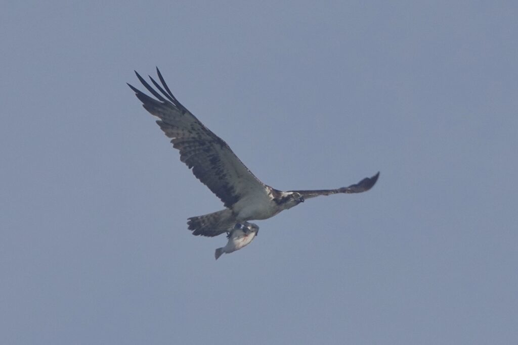 Stunning conditions for this morning’s Autumn Safari Cruise delivered two Osprey, including a Scottish-ringed adult male (thought to be two-year-old 511 who has been hanging around in recent weeks) which flew right past the boat with a flatfish, having been briefly chased by a Marsh Harrier. Also present in the area were several passage Skylark moving overhead, 4 Kingfisher in the mouth of the Frome, 3 Grey Plover crossing the channel, a distant Merlin perched on the Keysworth shore, and both White-tailed Eagles on the gull islands, who watched nonchalantly on as two paddle-boarders cruised right past. On the Brownsea Lagoon there were 70 Spoonbill, 40 Avocet, 1 Spotted Redshank, and 2 more Kingfisher, and as we returned to Poole Quay 8 Ringed Plover were sat on the marina wall. Highlights from elsewhere were 19 Greenshank on Sherford Pools in Lytchett Bay, and in Brands Bay there were 191 Black-tailed Godwit, 1 Bar-tailed Godwit, 4 Knot and 1 Brent Goose.
