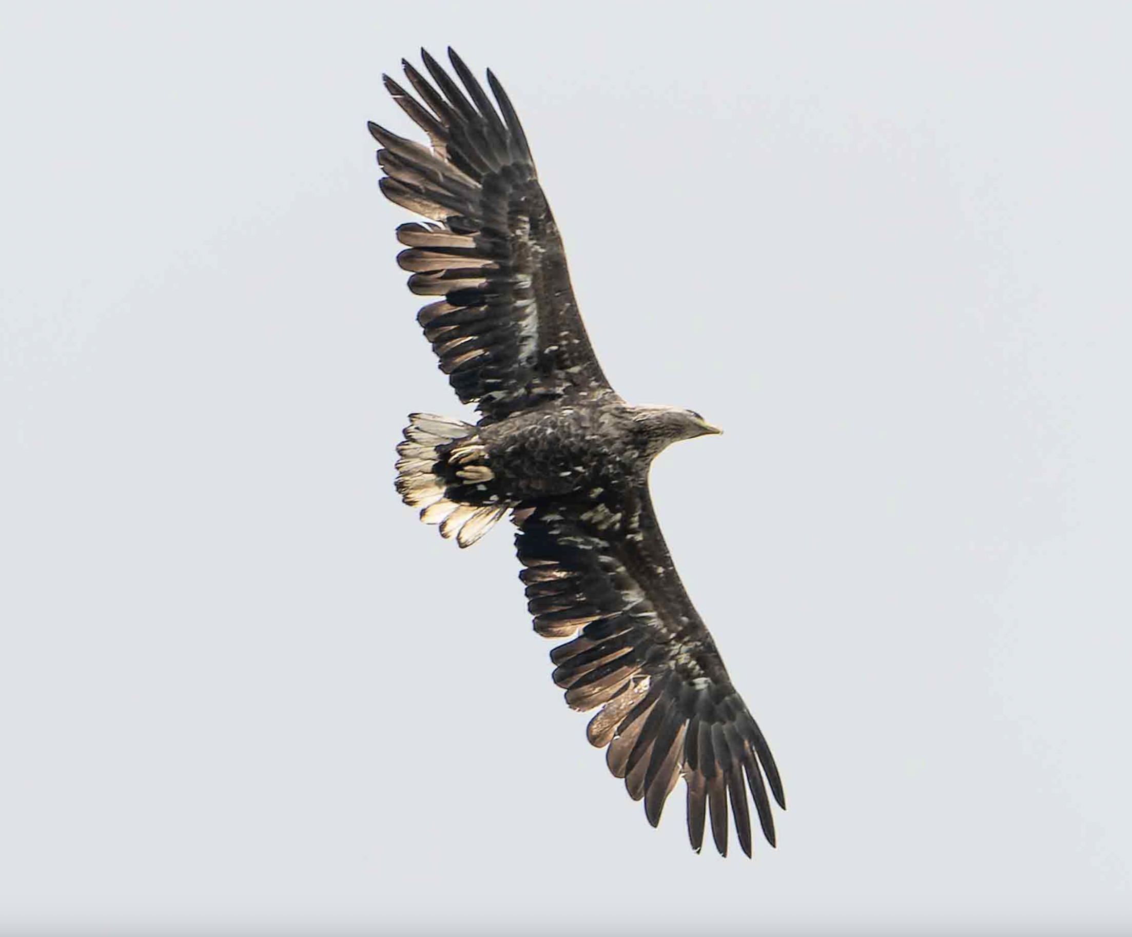 Female White-tailed Eagle G466 over the boat from Summer Safari Cruise this AM – John Thorpe