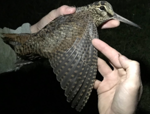 Woodcock ringed at Hartland last night – Adult due to pale tips to primary wing coverts