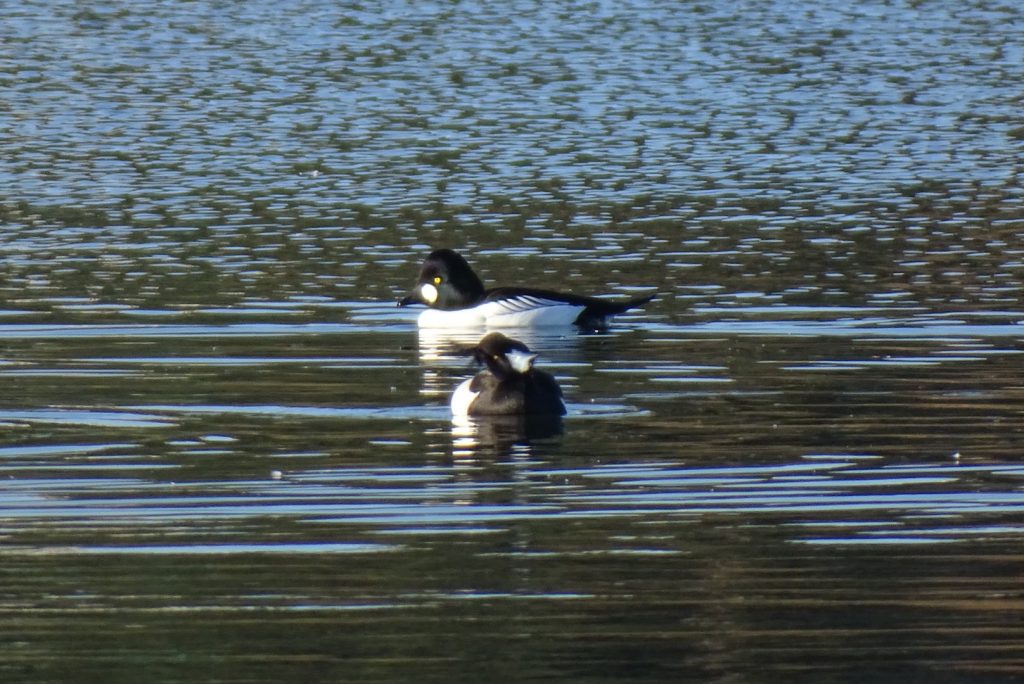 Drake Goldeneye (back) & Tufted Duck – Poole Park – Katrina Roberts