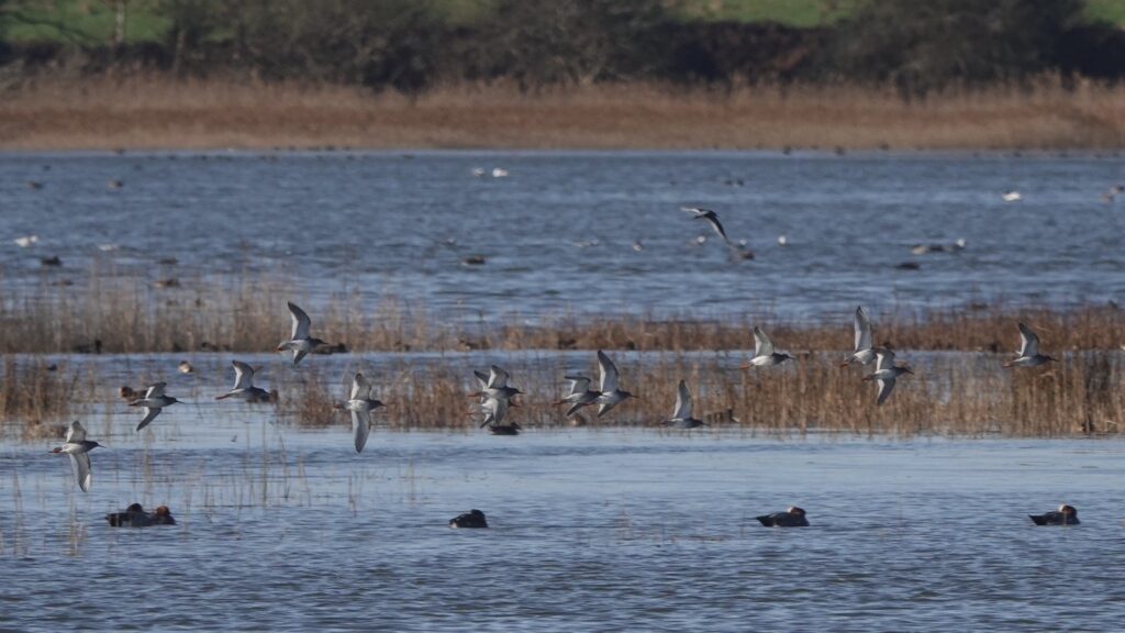 Massive high tides in the harbour today meaning lots of birds were pushed out of their usual feeding areas and roosts, making the Brownsea Lagoon very popular. Good numbers of Grey Plover, Knot, Dunlin and Sanderling were all seen on the lagoon as well as more Black-tailed Godwit than there have been with most feeding up in the Avon Valley floodplain. At least 6 Waxwing were showing well at Upton, Dacombe Drive with plenty of people seeing them feeding low in the mistletoe. At Arne, RSPB 1 ringtail Hen Harrier was still present and 3 White-tailed Eagle were seen from Hydes Heath. A Bittern flew across Swineham GP again this evening and on Wareham Common there were 19 Cattle Egret. This morning 3 Red Kite drifted over Wareham Common and buzzard were displaying en mass…..and so were Woodlark at traditional sites, albeit in lesser numbers!