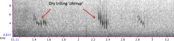 Skylark calls can be interpreted as a trilling ‘chirrup‘ ranging slightly in pitch and quite dry sounding.