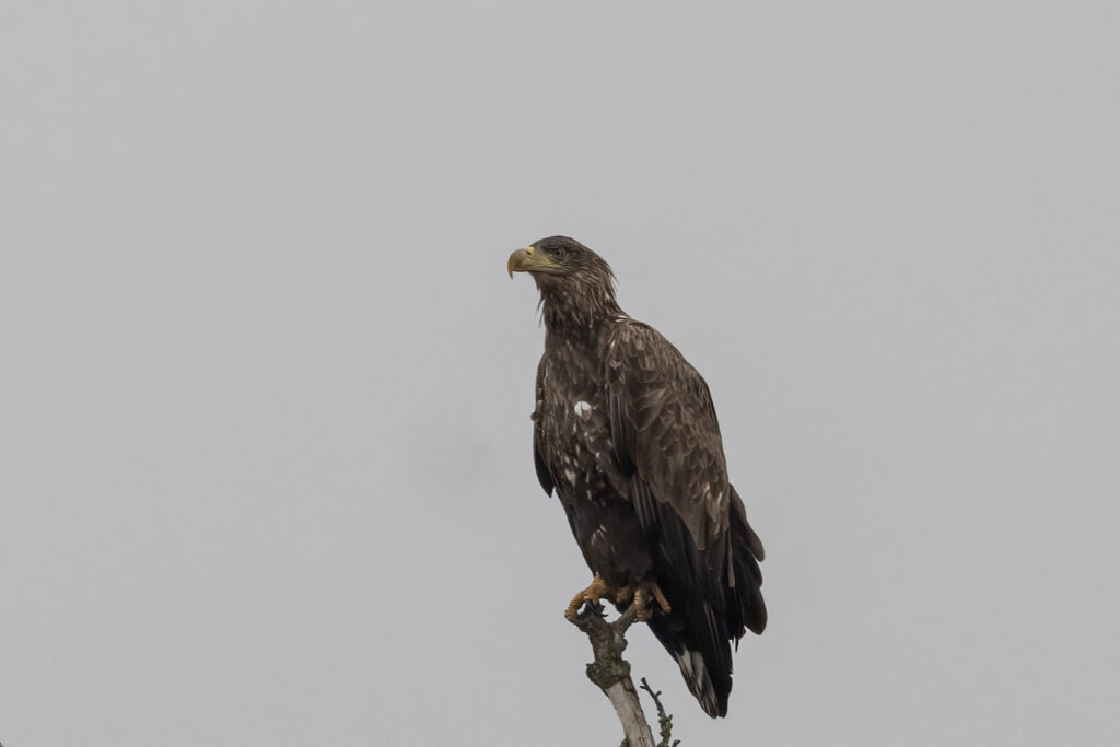 With the heavy rain forecast this morning, we certainly didn’t expect to have as much raptor activity as we did on our Autumn Safari Cruise this morning. The highlight was close views of White-tailed Eagle G466 perched in a tree on the RSPB Arne shoreline, as well as as estimated 3 Osprey hunting in the Wareham Channel over the course of the morning. 2 Marsh Harrier were active over the reedbeds near the mouth of the River Frome. The Brownsea Lagoon was also visited by a White-tailed Eagle earlier in the morning and there were at least 70 Spoonbill present, along with highlights including c.20 Avocet, 7 Grey Plover and 1 Greenshank, as well as 1 Peregrine hunkered down on the wall towards midday. We were also treated to views of a Sparrowhawk flying ahead the boat low over the water as we made our way back to the Quay. Elsewhere, there were 3 Spotted Redshank in Lytchett Bay this morning and 8 in Middlebere. A count at Lytchett Fields on the rising tide produced 484 Teal, 1 Wigeon, 20 Lapwing, 3 Curlew, 1 Bar-tailed Godwit, 193 Black-tailed Godwit, 39 Dunlin, 11 Snipe, 1 Common Sandpiper, 4 Green Sandpiper, 3 Spotted Redshank, 10 Greenshank and 100 Redshank. At Swineham this evening a Cattle Egret was with the cows and 5 Ruff were on the ‘Stilt Pools’. Brownsea Lagoon had 5 Curlew Sandpiper and 16 Greenshank and there were 17 Knot in Middlebere.