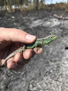 Wow, what an eventful couple of days. We apologise for no sightings yesterday but we were closely following the unfolding drama and devastation of the Wareham Forest fire which is now thankfully (mostly) out. In total 183ha were lost, mostly pristine heathland habitat. Today we were out with a host of other individuals and organisations trying to rescue any stranded reptiles before the corvids, kestrels and Buzzards arrived. Between all the helpers a good number of common Lizard, several Sand Lizard, Smooth Snake and Slow Worm were all retrieved off the scorched ground and placed onto suitable habitat beyond the burnt area. It’s unknown how the fire started but sadly, many that occur this time of year are started deliberately and the combination with the dry conditions and steady wind that day meant it really took hold badly. We have to give huge credit to the fire service and Forestry Commission who did a great job in limiting the damage as the fire tore through large parts of the forest with everyone working exceptionally hard in protecting certain areas and keeping people safe.