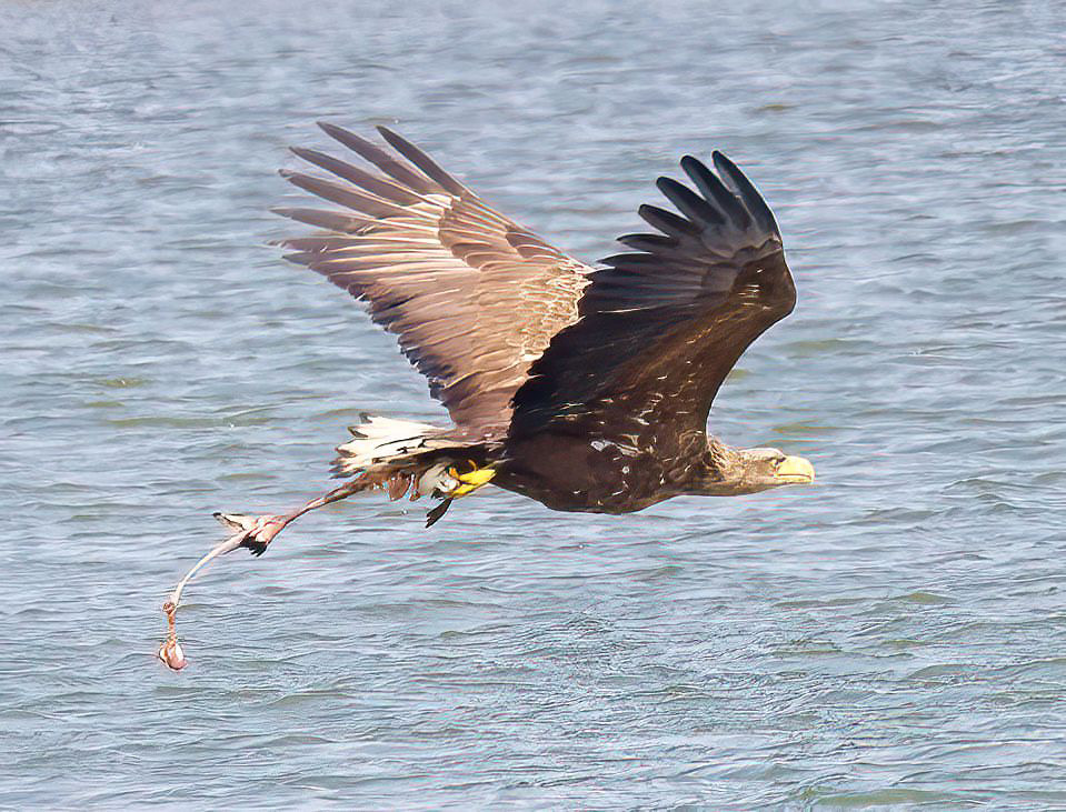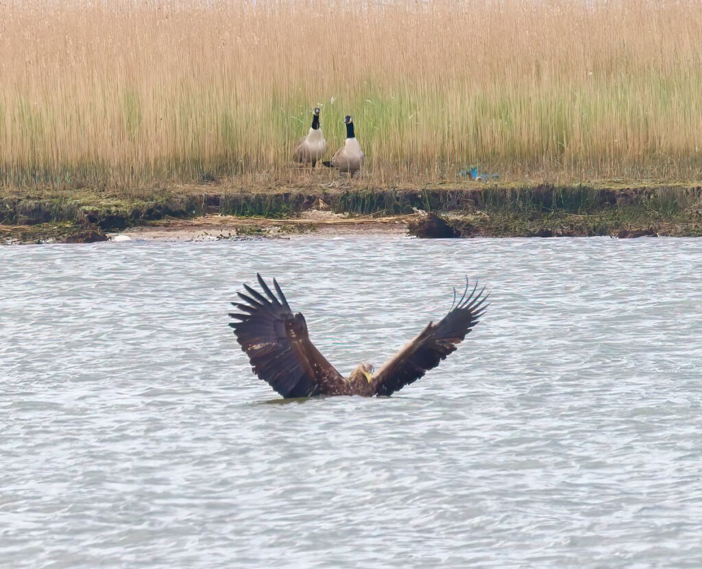 Astonishing views of the White-tailed Eagle pair on our Spring Safari Cruise this morning. We had multiple flybys in the Wareham Channel as well as the female of the pair G466 diving into the water at one point and bringing out the skeleton of some sort of water bird!? It’s fantastic that this is becoming such a common sight in the local area and great to see how well they are fitting into this landscape. We also had stunning views of the Forster’s Tern on a yellow buoy off the Hamworthy shoreline. It then took off with 2 Sandwich Tern and headed towards Brownsea. 3 Whimbrel flew west into the Wareham Channel. On the Brownsea Lagoon there were c30 Sandwich Tern and c10 Common Tern as well as c30 Bar-tailed Godwit and 1 Avocet.