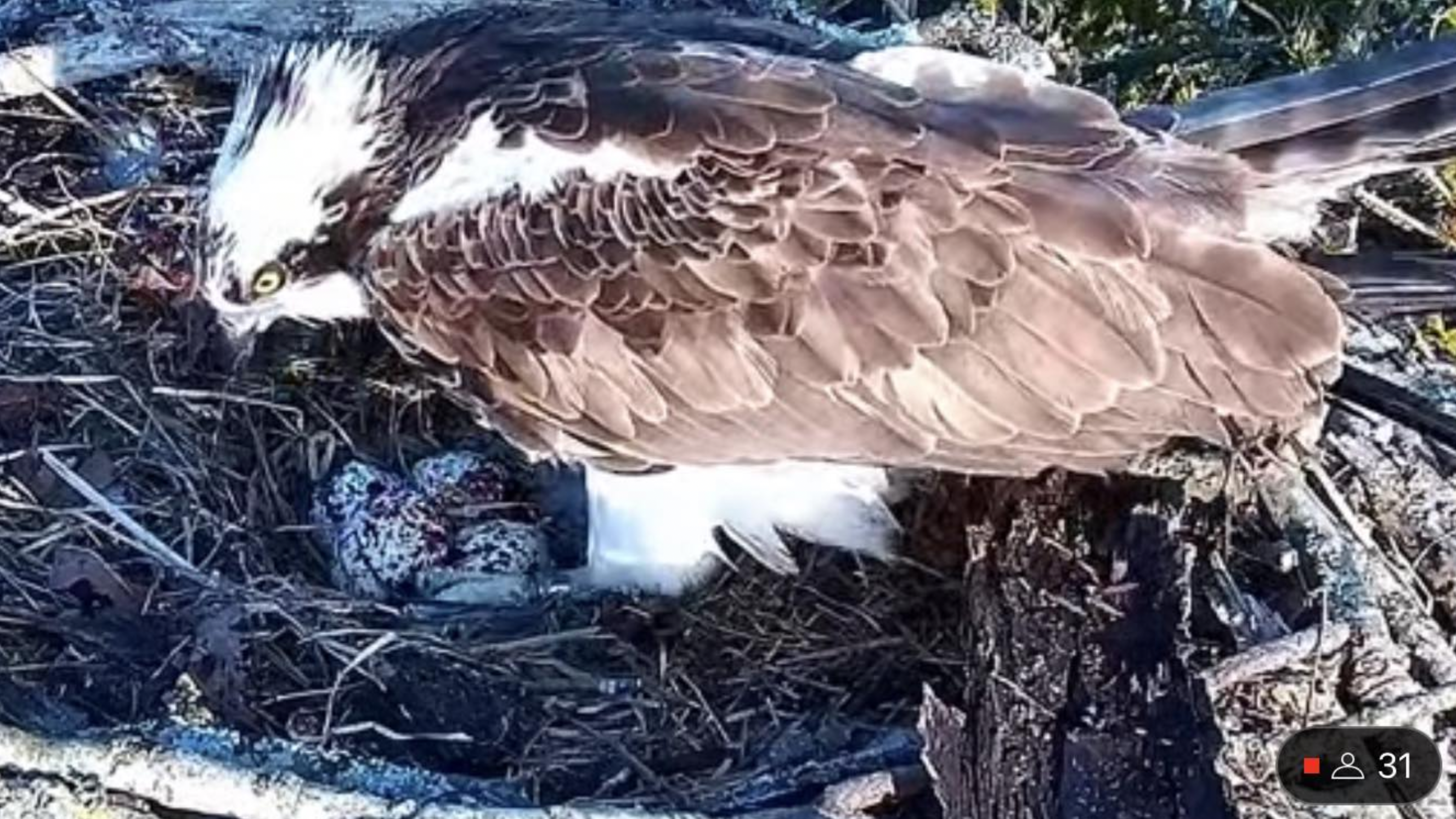Female Osprey CJ7 revealing her surprise 4th egg yesterday evening