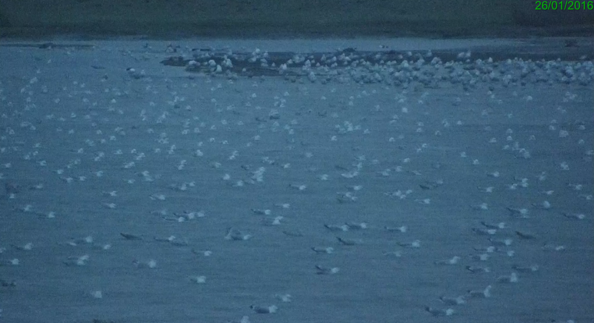 Gull roost at dusk during storm – Brownsea Lagoon (different view)