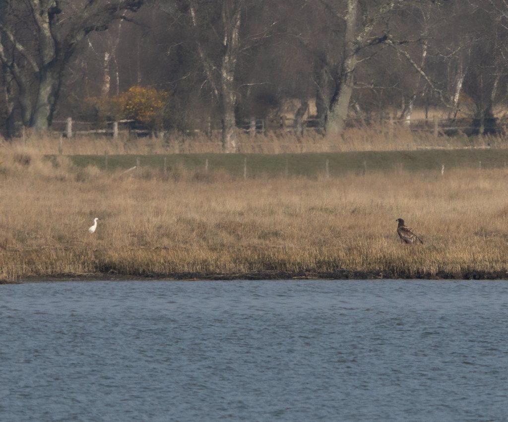 White-tailed Eagle with Little Egret – Wareham Channel – Simon Wilson
