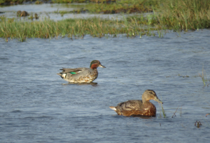 Moulting drake Teal (above) and Mallard (below) – Lytchett Fields