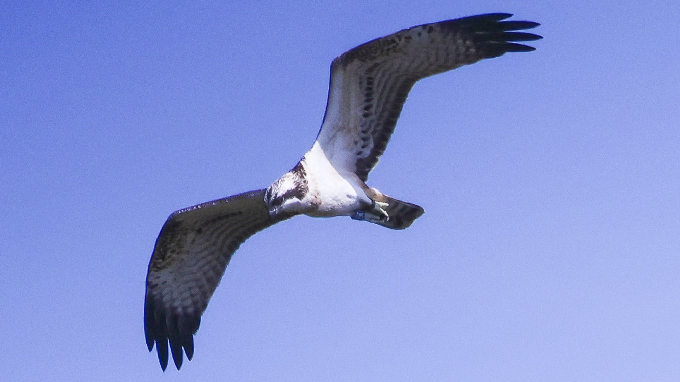 Juvenile Osprey ‘5R2’ being seen in the Middlebere Channel for the first time since fledging – Phyl England
