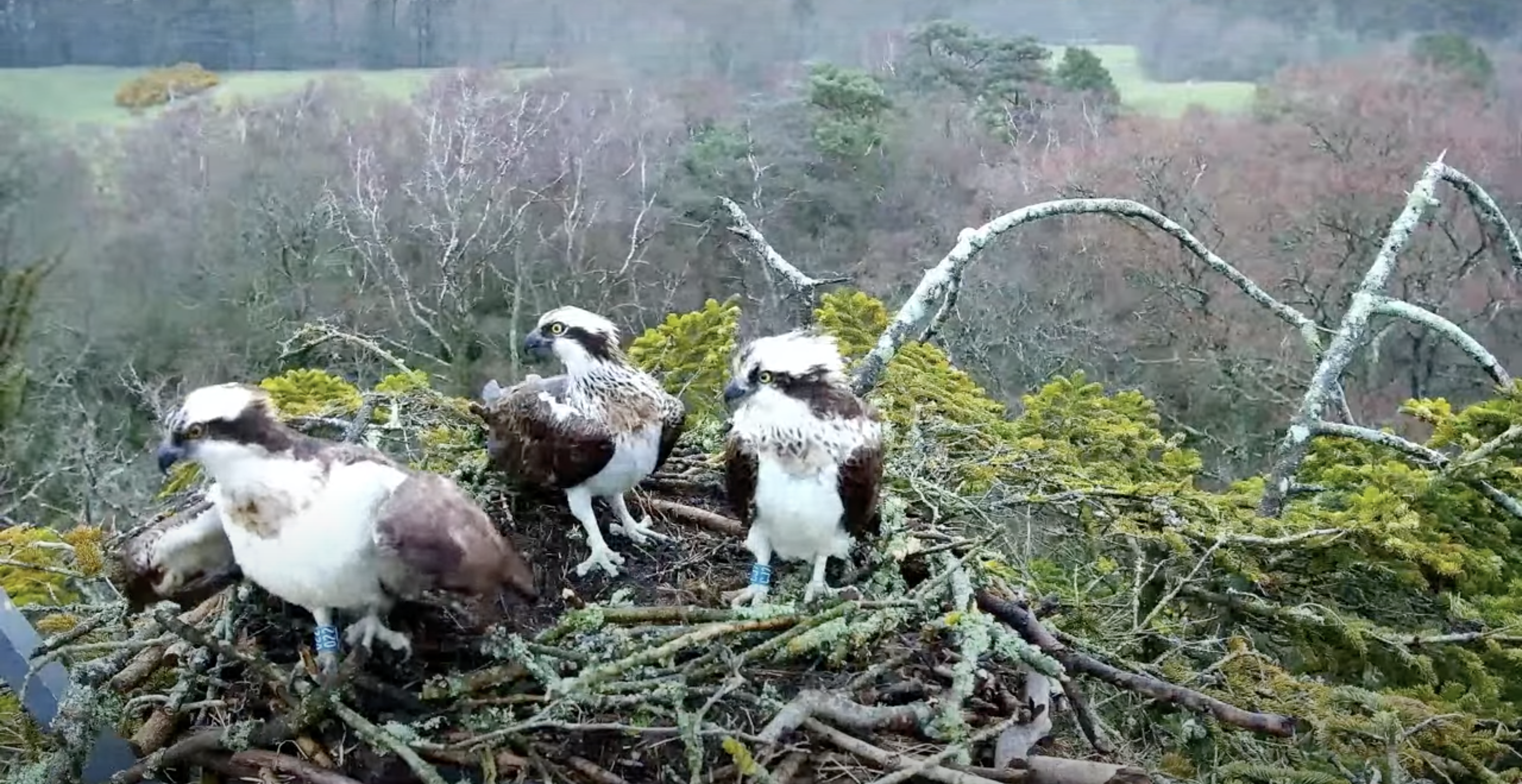 Poole Harbour Osprey Nest Cam (left to right: 022, unringed female, CJ7)