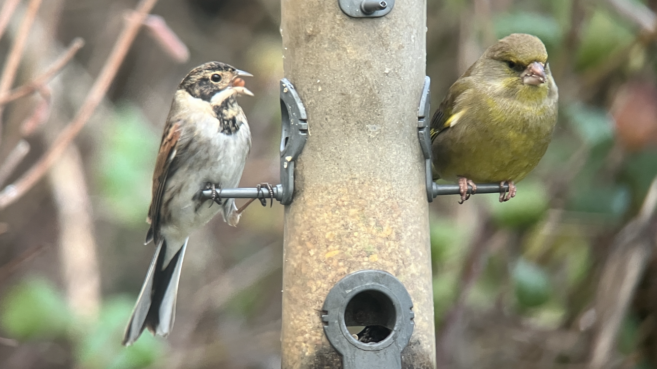 Reed Bunting and Greenfinch – Rock Lea view feeders, Lytchett Bay